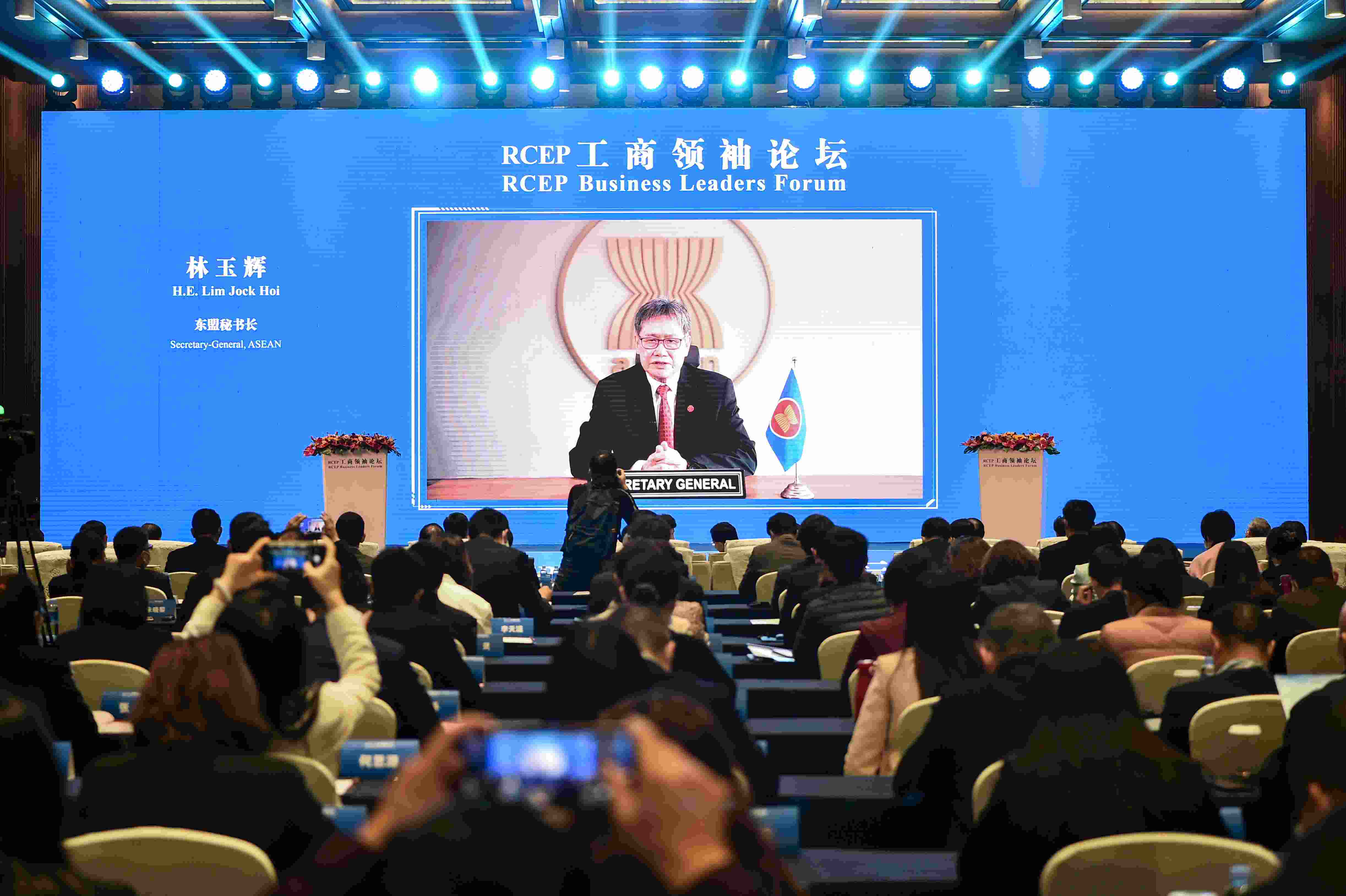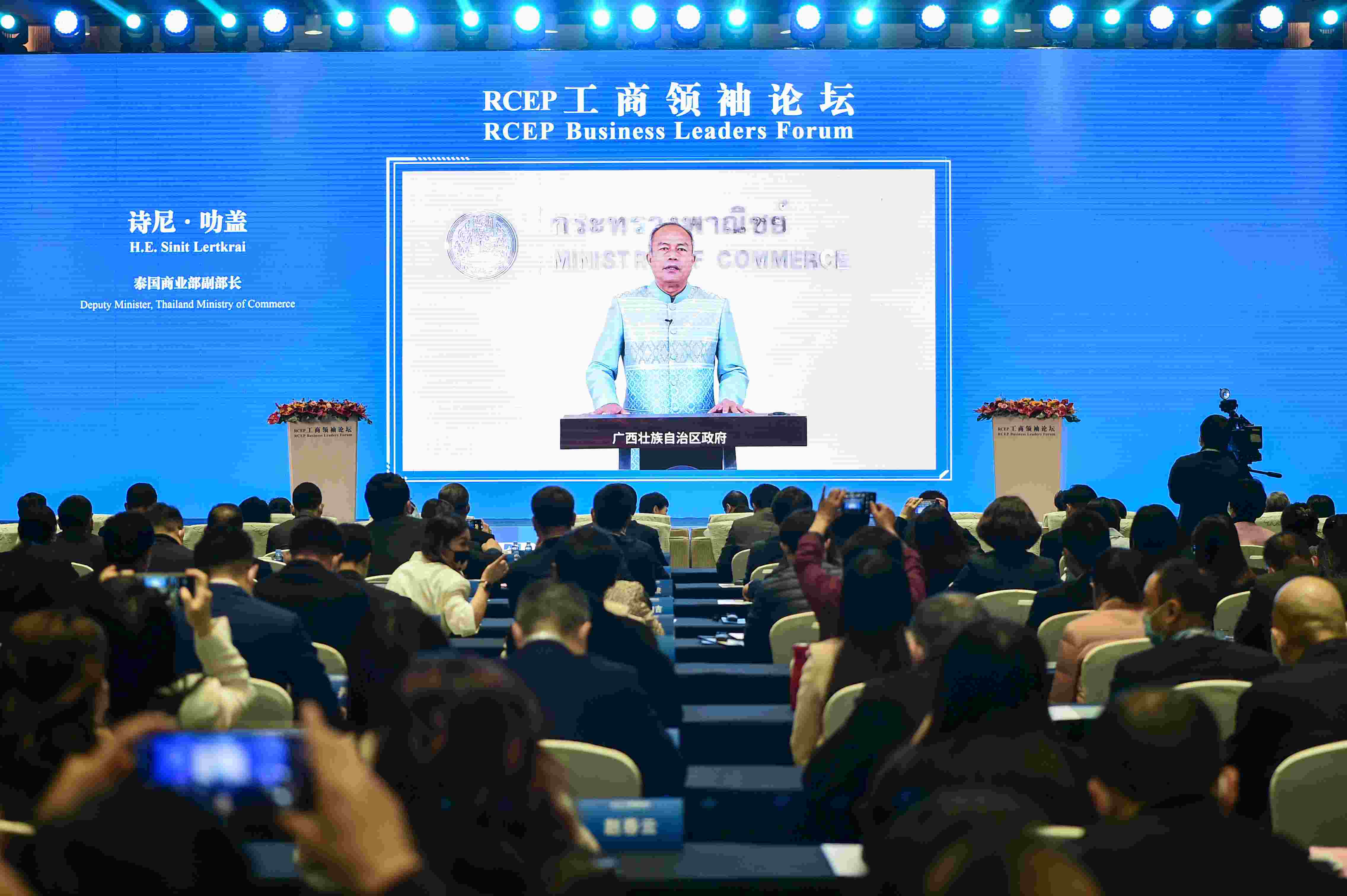 论坛以“共迎合作新时代,共创发展新未来”为主题,是在RCEP生效伊始全部15个成员国共同参加的首次工商界活动。中国贸促会会长高燕、广西壮族自治区主席蓝天立、东盟秘书长林玉辉、中国—东盟中心秘书长陈德海、泰国商业部副部长诗尼·叻盖、柬埔寨总商会主席陈丰明、东亚商务理事会主席赵学熙等出席开幕式并致辞。中国贸促会副会长张少刚在闭幕式致辞。RCEP各成员国驻华使节、商协会和企业代表在专题研讨环节发言交流。