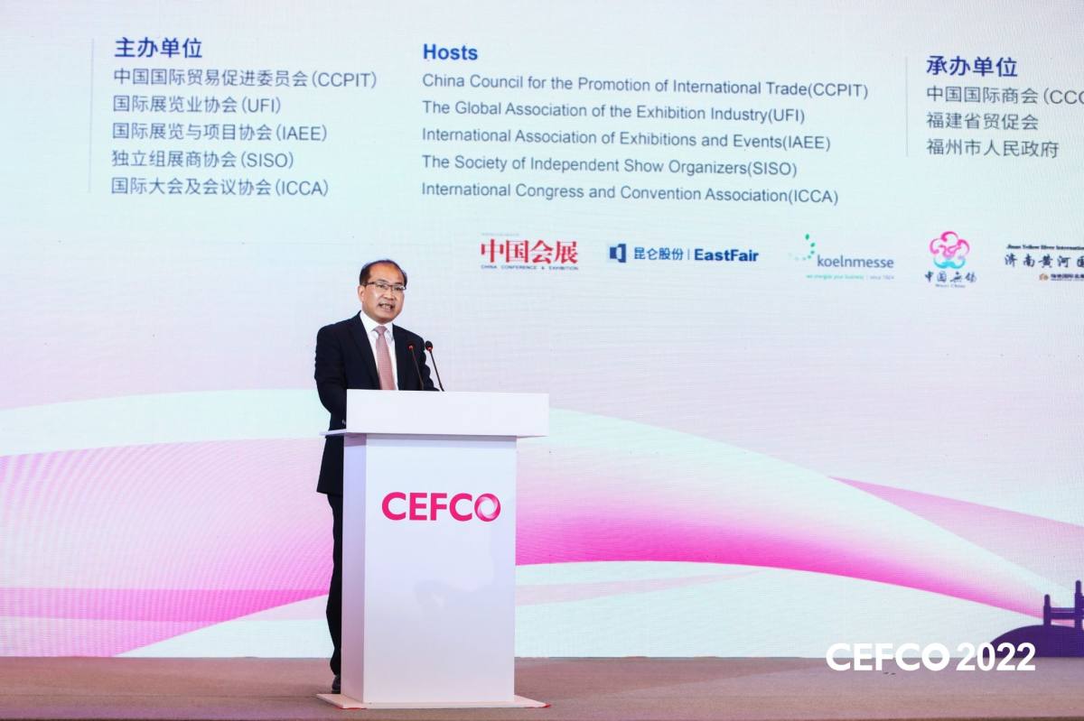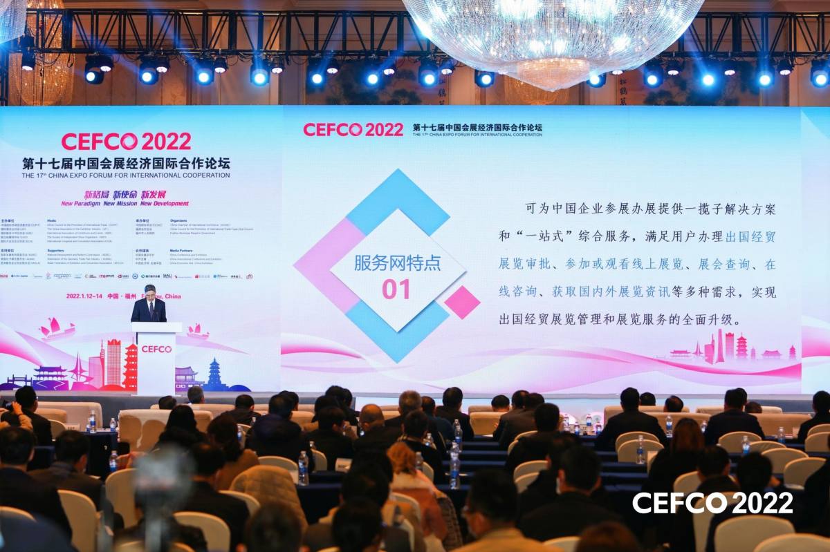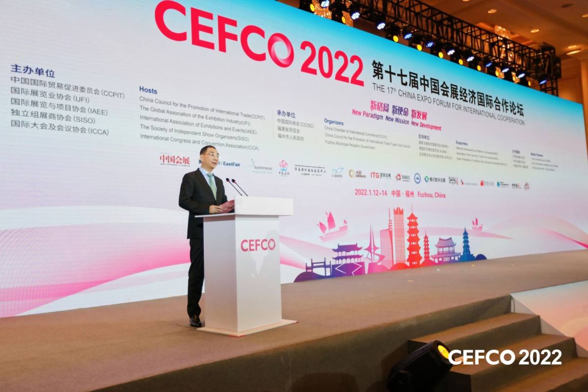 2022年1月12日至14日,第十七届中国会展经济国际合作论坛(CEFCO 2022)在福建省福州市举行。CEFCO论坛由中国贸促会、国际展览业协会、国际展览与项目协会、独立组展商协会、国际大会及会议协会共同主办,中国国际商会、福建省贸促会、福州市人民政府承办。此次论坛旨在深入探讨会展业未来发展趋势,进一步提振行业信心,推动会展业克服新冠肺炎疫情不利影响,实现高质量发展。