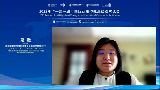 本次高级别对话会旨在推动高质量共建“一带一路”走深走实,帮助企业有效利用仲裁手段解决跨国商事争议,防范和化解法律风险。国内外观众共计约1.5万人次在线观看会议直播,25名中外专家围绕“一带一路”国际贸易中的风险防范、国际仲裁中的透明度、国际仲裁中的腐败问题等热点话题进行深入研讨。其中,贸仲仲裁研究所副主任粟撒在“‘一带一路’国际贸易中的风险防范”议题中从贸仲涉“一带一路”国家案件数据、案件程序中值得关注的问题、案件实体中值得关注的问题等方面进行了分享。