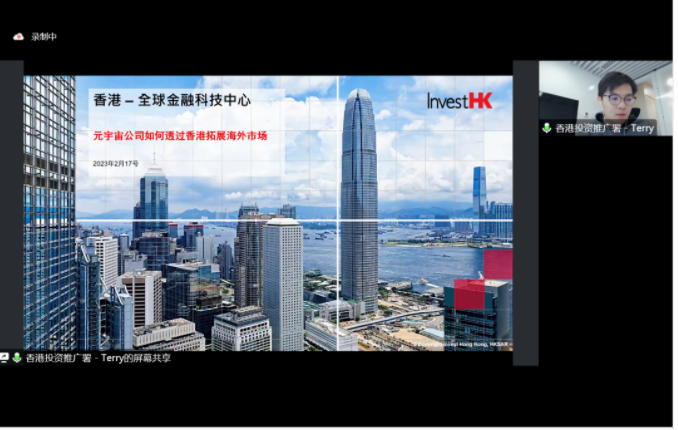 第二个专题是“香港元宇宙产业服务政策介绍”。主讲嘉宾香港特区政府投资推广署总部金融科技高级经理陈立智先生通过项目案例分享了香港特区虚拟资产的发展状况与监管政策,为本地元宇宙产业拓宽国际化视野提供了帮助。