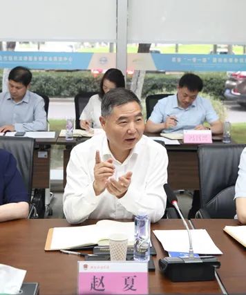 2023年7月12日下午,由西安市司法局和西安国际港务区管委会主办,西安市司法局“三个中心”办公室和中国国际经济贸易仲裁委员会丝绸之路仲裁中心(以下简称“贸仲丝路中心”)承办的第三期外经贸企业法律服务工作座谈会在“三个中心”召开。市司法局党组书记赵夏、市司法局副局长史伟、贸仲丝路中心秘书长助理蒋红梅、国际港务区管委会代表等出席会议。会议由市司法局副局长史伟主持。与会代表观看了“一带一路”国际商事法律服务示范区及“三个中心”建设宣传片。