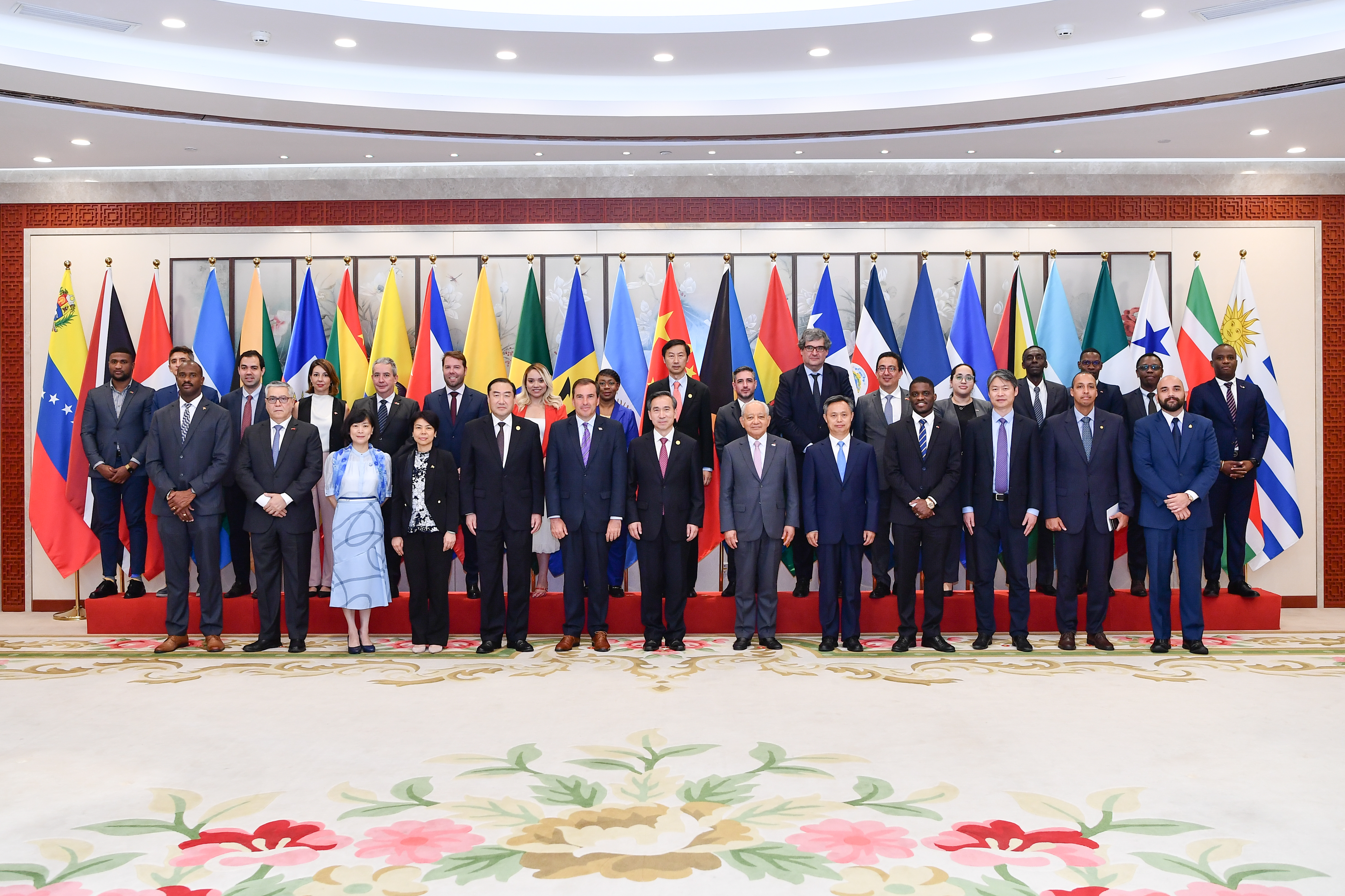 7月24日,中国贸促会会长任鸿斌在京会见来自拉美和加勒比地区24个国家的驻华使节和代表。