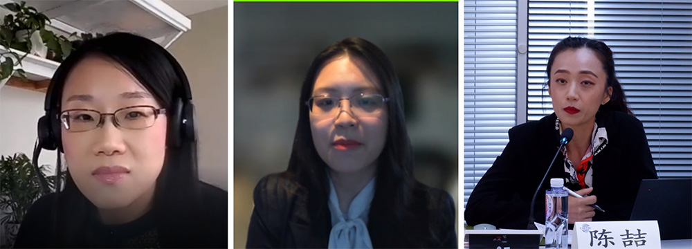 (从左到右依次为鲁珏隽、汪润萌和陈喆律师发言)