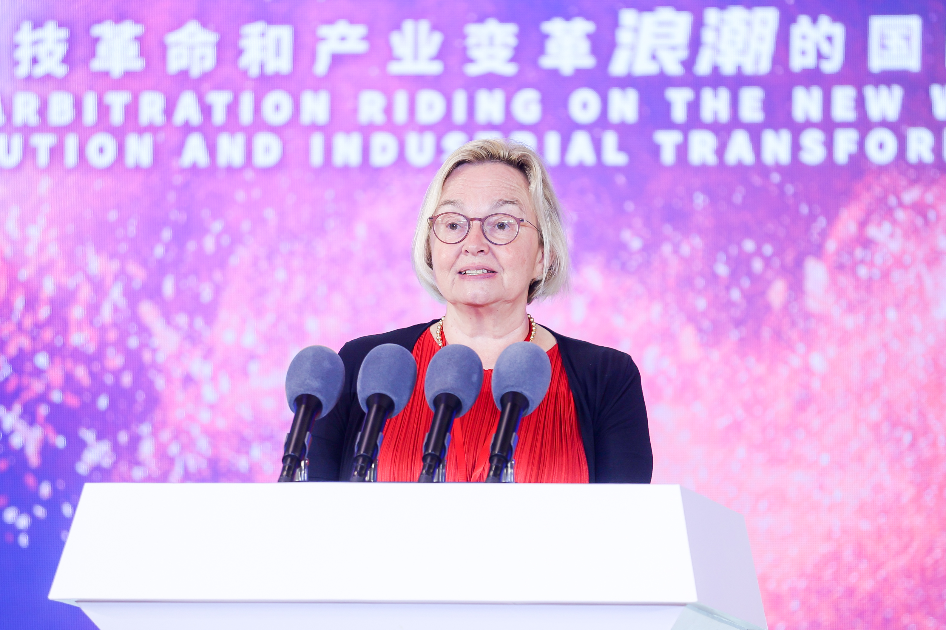 (联合国贸法会秘书长Anna JOUBIN-BRET女士在开幕式上致辞)