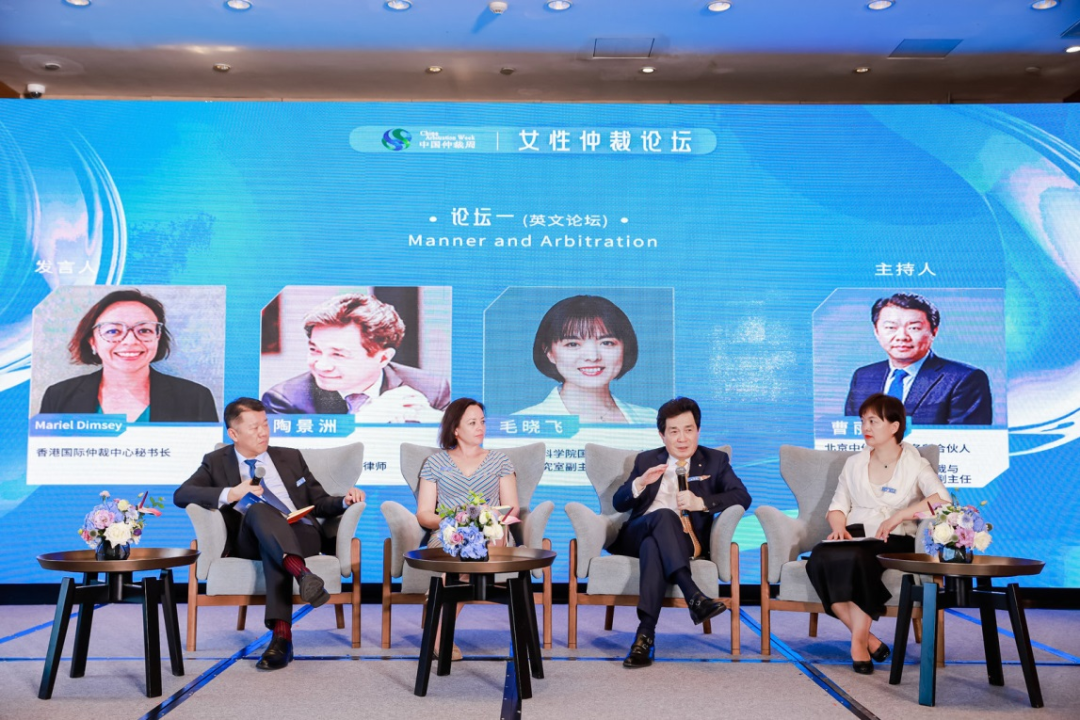 本次论坛有三个环节,第一环节以“Manner and Arbitration”为主题,由北京中伦律师事务所合伙人、SIAC仲裁院理事、中华全国律师协会仲裁与律师调解专业委员会副主任曹丽军主持。香港国际仲裁中心秘书长戴美琳,独立仲裁员、法国巴黎上诉法院律师陶景洲,中国社会科学院国际法研究所国别法研究室副主任、副研究员毛晓飞分别从性别、文化、国籍等角度,探讨了仲裁员任命多样性的话题。