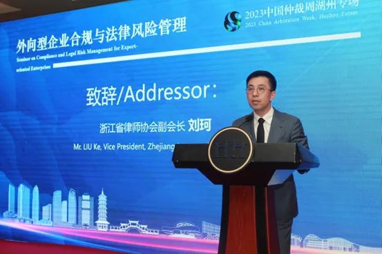 浙江省律师协会副会长刘珂在致辞中表示,当前,我国外向型企业正面临着前所未有的机遇和挑战。一方面,国际市场需求旺盛,为我国外向型企业提供了广阔的发展空间。另一方面,国际商事环境复杂多变,涉外法律制度多元差异,外向型企业在开展境外活动时,如何有效地应对和解决合规要求和法律风险,已经成为影响企业竞争力和发展潜力的关键因素。相信通过本次会议对于外向型企业合规及风险防范、涉外商事争议解决等方面的研讨,能提高企业在国际商事活动中的法律意识和风险防范能力。