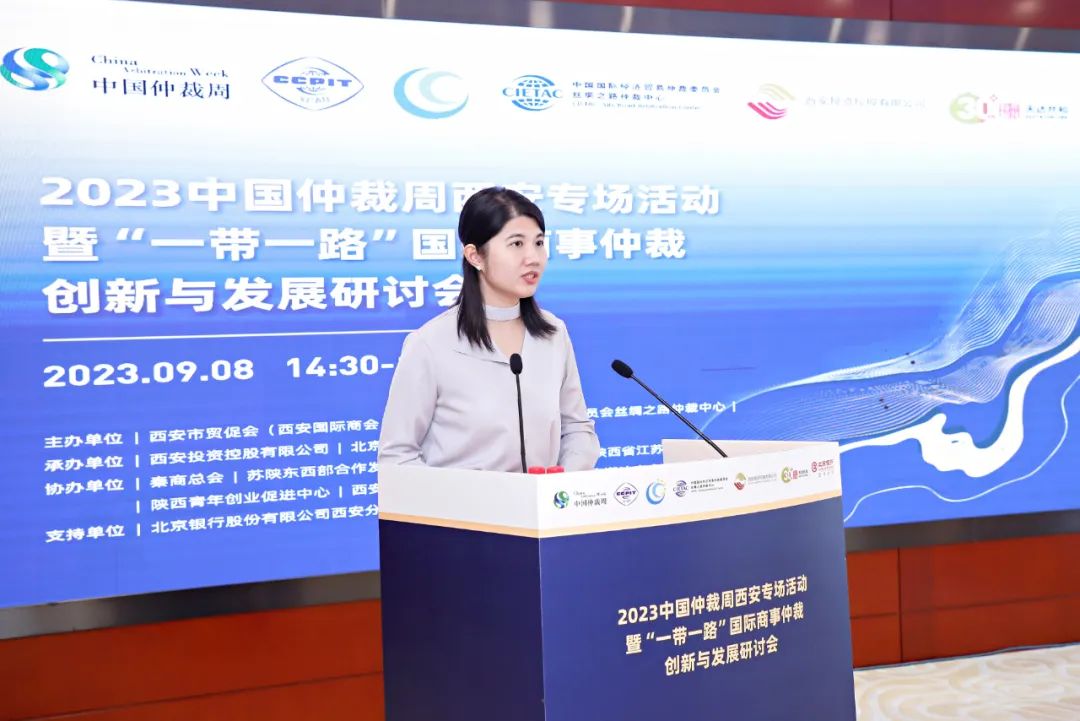 9月8日下午,2023中国仲裁周西安专场活动暨“一带一路”国际商事仲裁创新与发展研讨会成功举办。本次会议由中国国际经济贸易仲裁委员会丝绸之路仲裁中心(简称“贸仲丝路中心”)、西安市贸促会(西安国际商会)主办,西安投资控股有限公司、北京天达共和律师事务所承办,秦商总会、苏陕东西部合作发展促进会、西部企业家商会、陕西省江苏商会、陕西青年创业促进中心、西安市新生代企业家联谊会和西安市潮汕商会协办,北京银行股份有限公司西安分行、西安高科集团有限公司支持举办。西安市贸促会(西安国际商会)副会长张庚元、贸仲丝路中心副秘书长蒋红梅出席会议并致辞,贸仲丝路中心案件经办人余茜主持。