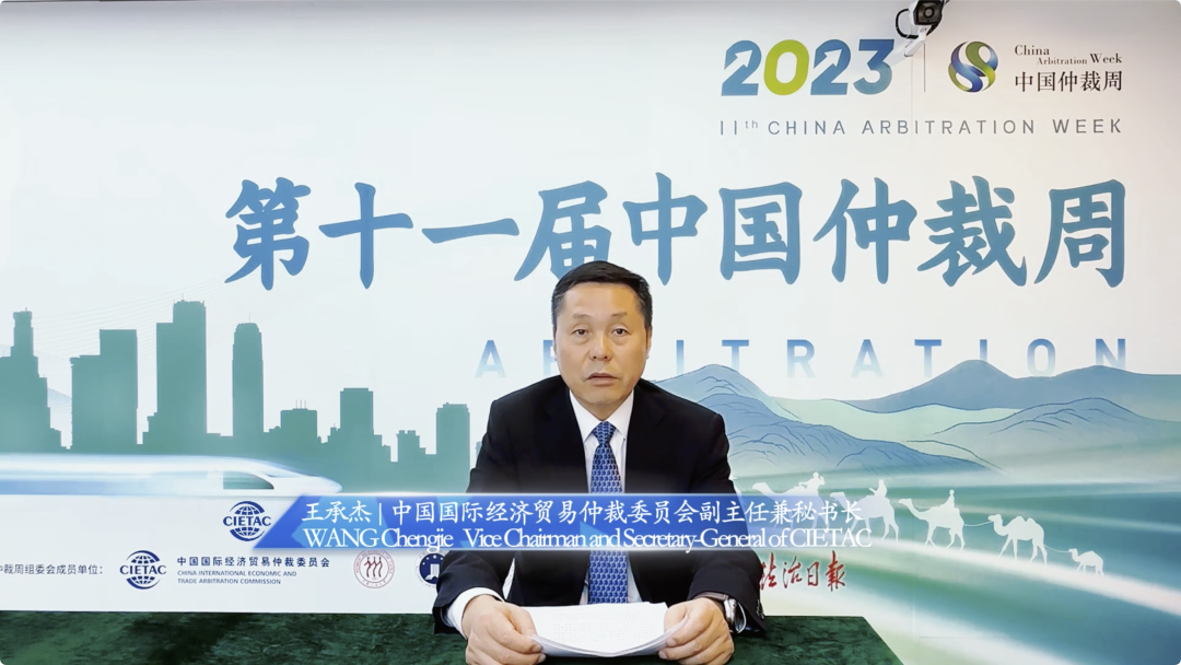 (贸仲副主任兼秘书长王承杰在开幕式上致辞)