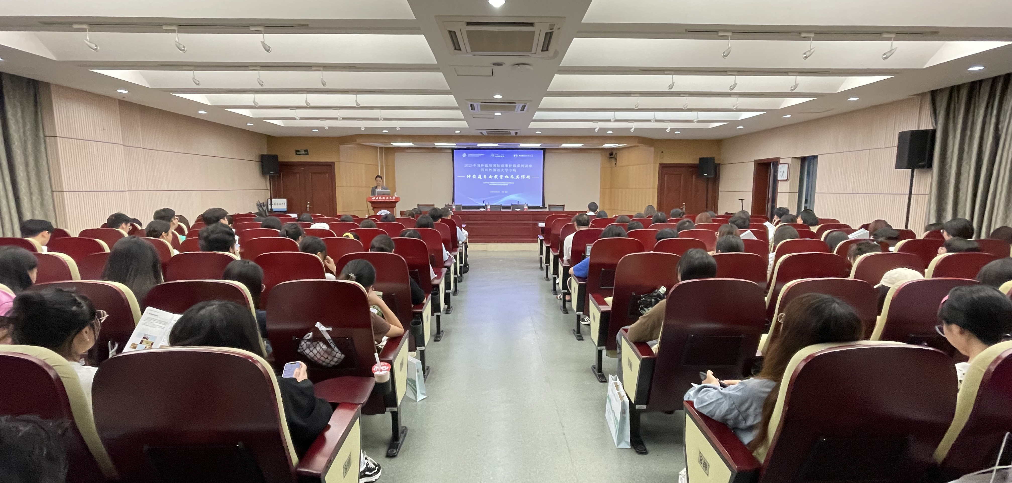 2023年9月12日,中国仲裁周之“仲裁庭自由裁量权及其限制”专题讲座在四川外国语大学成功举办。本次讲座由贸仲仲裁员、法学博士唐青阳先生主讲,贸仲仲裁员、川外商务英语学院副教授郑文琳女士担任主持人,贸仲西南分会/四川分会秘书长王瑞琛以及重庆市商务委员会政策法规处处长王进参与话题讨论。川外商务英语学院、社会与国际法学院130余名同学参与了本次讲座。