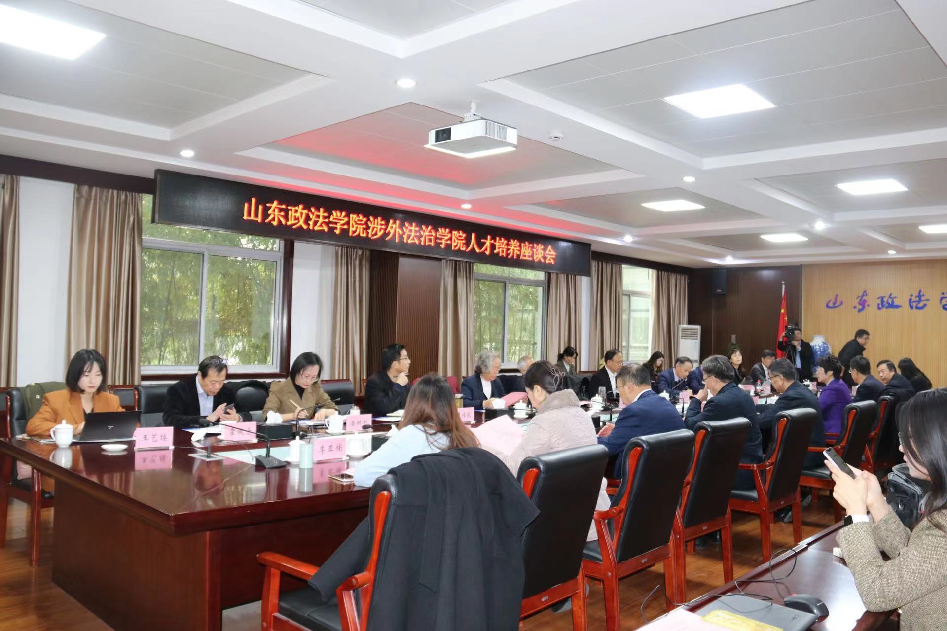 揭牌仪式后,学校举行涉外法治人才培养座谈会,与会人员围绕新时代涉外法治工作重点、涉外法治学科建设、涉外法治人才培养、产教融合科教融汇、服务社会法治建设等方面进行深入研讨交流。
