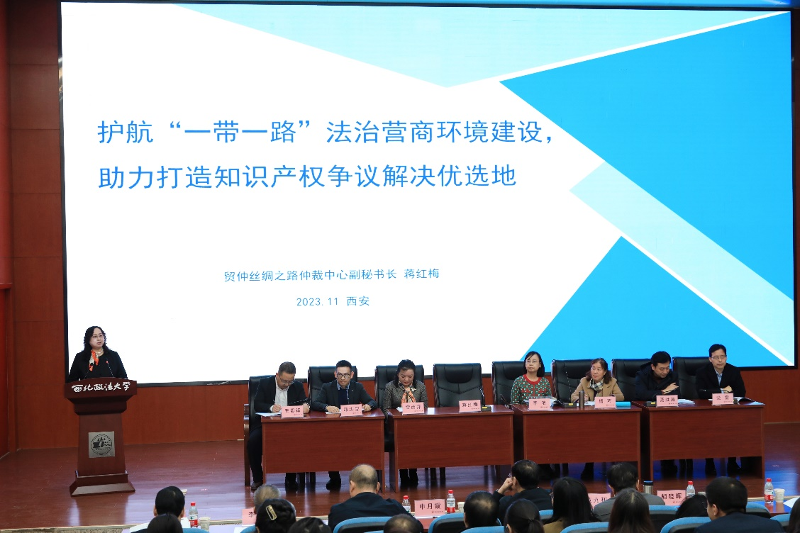 2023年11月25日,由陕西省法学会知识产权法学研究会(简称“研究会”)、西北政法大学经济法学院(知识产权学院)主办的“第二届服务秦创原知识产权法治保障论坛”暨陕西省法学会知识产权法学研究会2023年年会在西安成功举办。会议由陕西省公众科学素质与法治国家建设研究中心、西安市科技局秦创原知识产权法治保障智库承办,陕西法智律师事务所协办。中国国际经济贸易仲裁委员会丝绸之路仲裁中心(简称“贸仲丝路中心”)副秘书长、研究会副会长蒋红梅应邀出席会议。