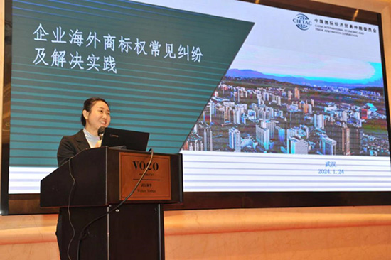 2024年1月24日,“商标国际注册马德里体系宣讲会暨企业海外知识产权保护专题培训”在武汉成功举办。该活动由中国贸促会法律部、世界知识产权组织(WIPO)马德里体系运营司、武汉市贸促会、武汉市市场监督管理局(市知识产权局)共同主办,由中国国际经济贸易仲裁委员会(贸仲)湖北分会、中国贸促会专利商标事务所(贸促会专商所)共同协办。来自政府部门、相关企业、创新主体、行业协会、科研院所、知识产权服务机构等代表约180人现场参会。