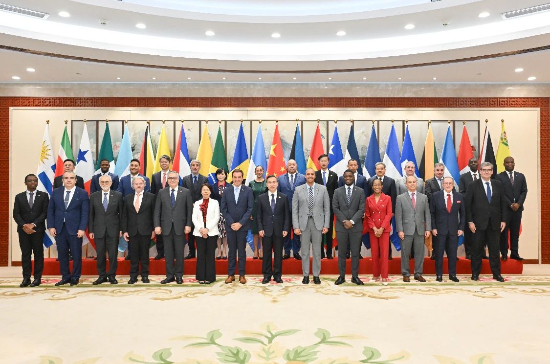 6月26日,中国贸促会会长任鸿斌在京会见来自拉美和加勒比地区24个国家的驻华使节和代表。