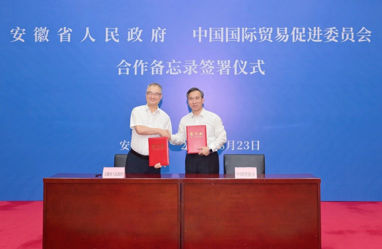 8月22日至23日,中国贸促会会长任鸿斌在安徽调研期间,同安徽省委书记梁言顺举行工作会谈,与省长王清宪签署深化合作备忘录。
