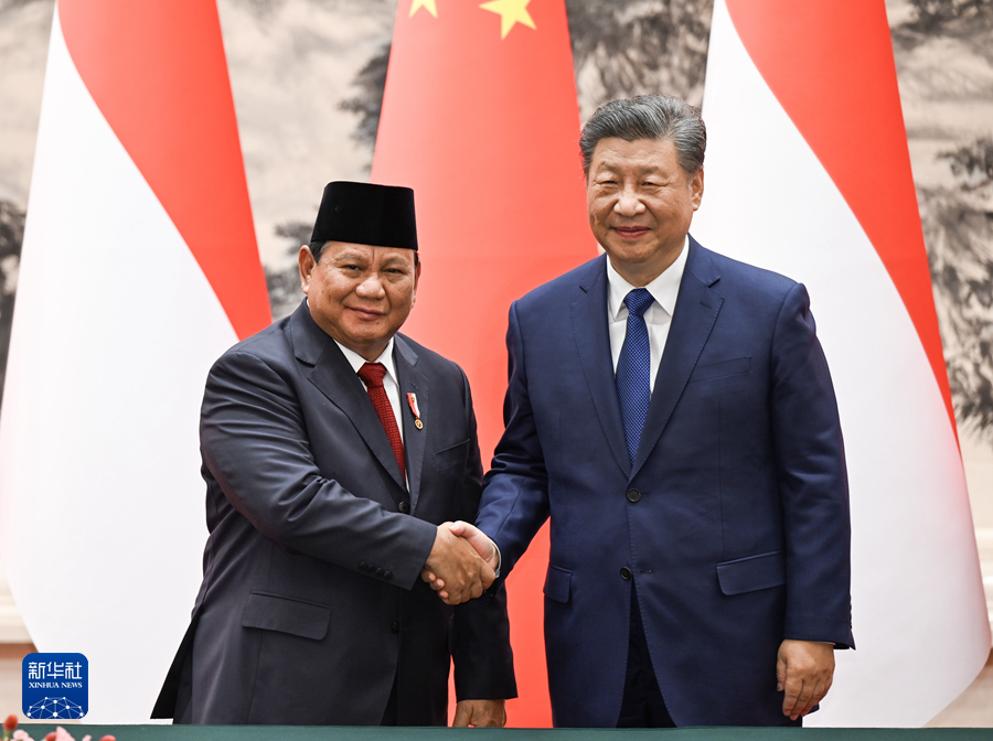 11月9日下午,国家主席习近平在北京人民大会堂同来华进行国事访问的印度尼西亚总统普拉博沃举行会谈。会谈后,两国元首共同见证签署多项双边合作文件。新华社记者 谢环驰 摄