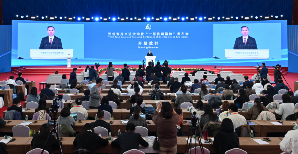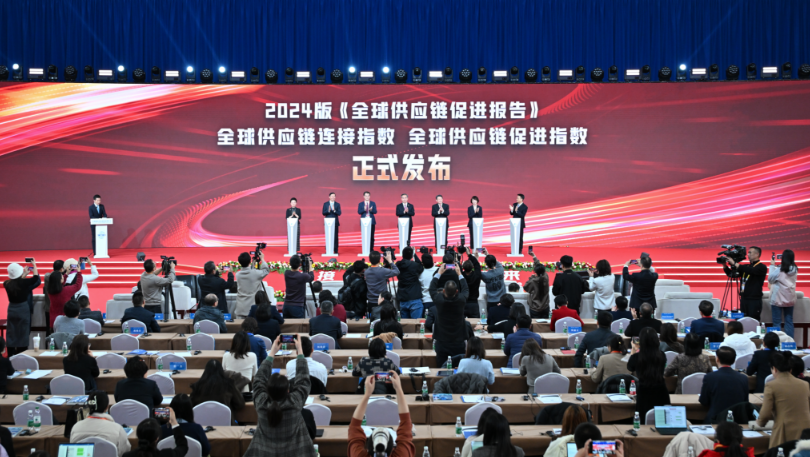 11月26日下午,第二届链博会主题活动—贸促智库交流活动暨“一报告两指数”发布会在京成功举办,会上首次发布2024版《全球供应链促进报告》、全球供应链促进指数,以及研究院与央视总台财经节目中心联合研发的全球供应链连接指数,中国贸促会会长任鸿斌出席发布会并致辞,为推动全球供应链的开放合作贡献链博智慧。