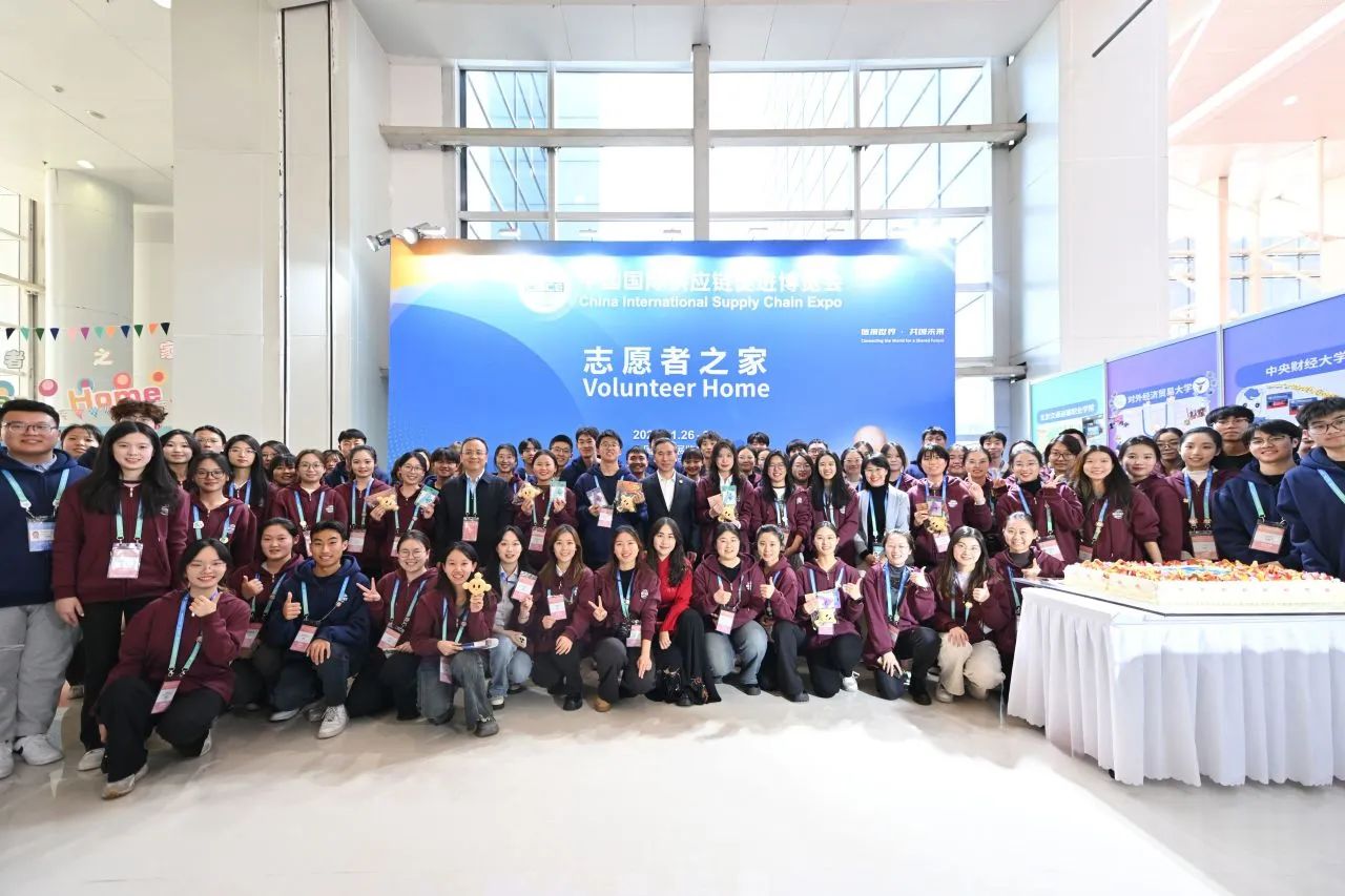 11月28日下午,第二届链博会志愿者集体生日会在中国国际展览中心(顺义馆)志愿者之家举行。中国贸促会会长任鸿斌与来自北京外国语大学、中央民族大学、中央财经大学等12所高校的近400名志愿者共同庆生。