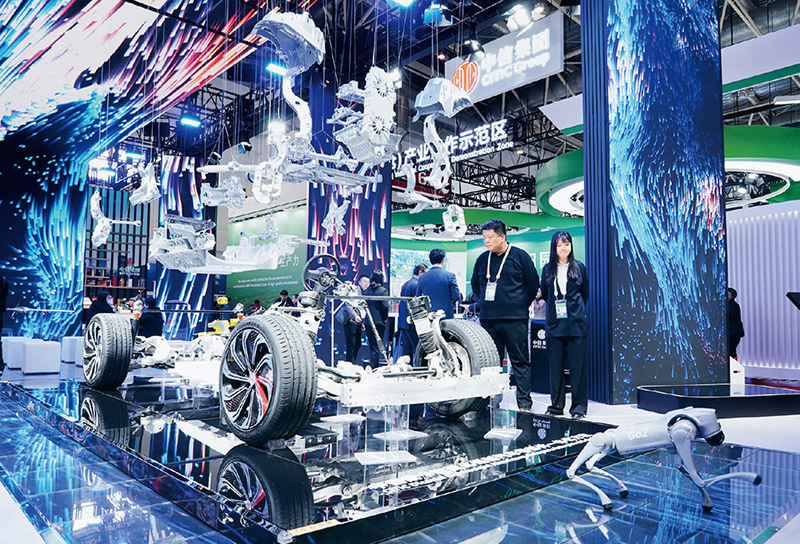 中国国际供应链促进博览会是全球首个以供应链为主题的国家级展会,有力促进了上中下游产业衔接、大中小企业融通、产学研用协同、中外企业互动。图为2024年11月27日,在第二届中国国际供应链促进博览会先进制造链展区展示的“中信戴卡轻量化铝制汽车零部件一体化方案”。新华社记者 张晨霖/摄