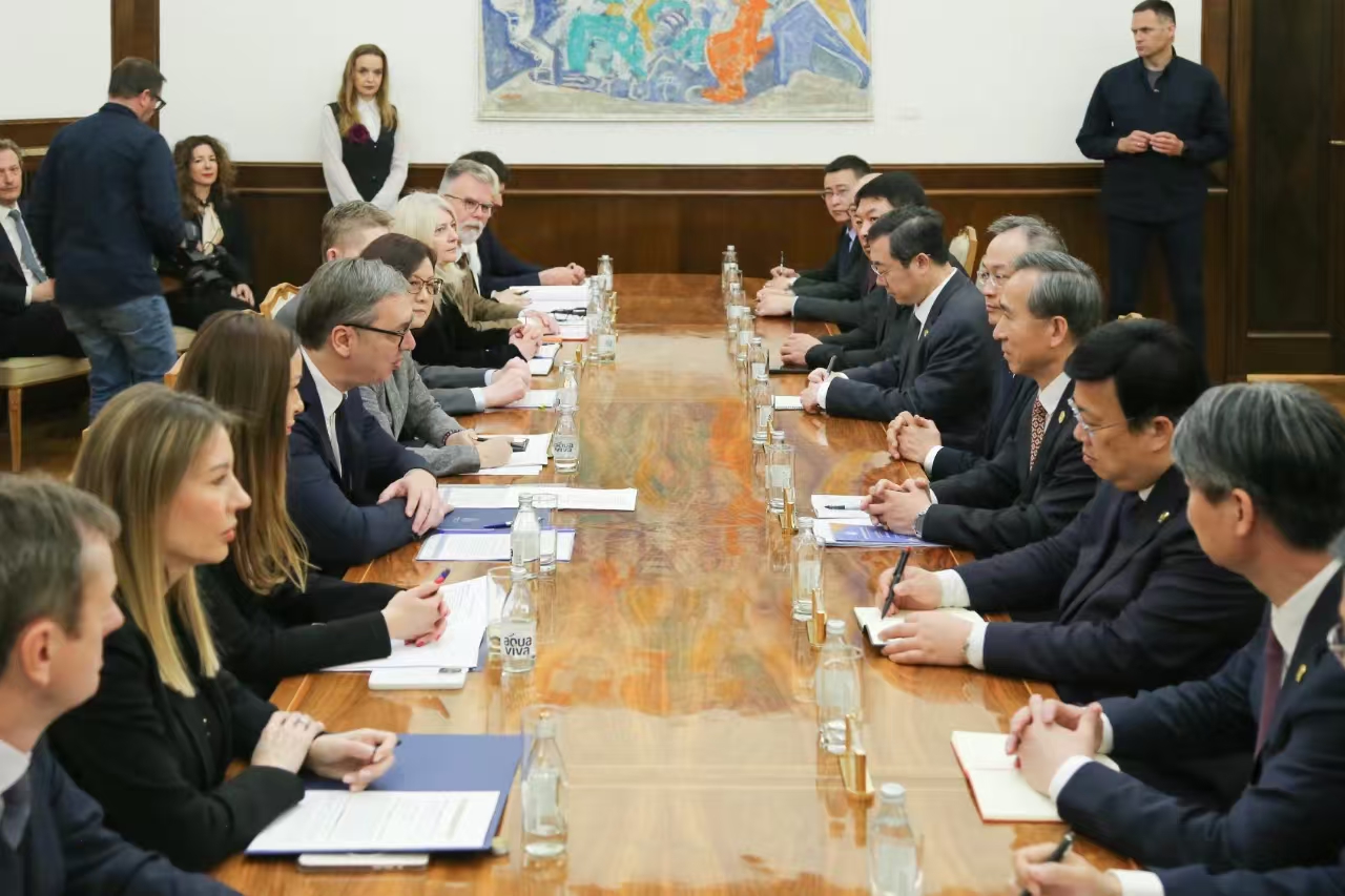 3月21日,中国贸促会会长任鸿斌率中国企业家代表团访问塞尔维亚,期间,在贝尔格莱德拜会塞尔维亚总统武契奇。双方围绕深化和提升中塞全面战略伙伴关系、加强中塞经贸务实合作、高质量共建“一带一路”等交换意见。中方将支持塞方举办2027年贝尔格莱德专业类世博会,塞方将积极组织企业参加第三届链博会。