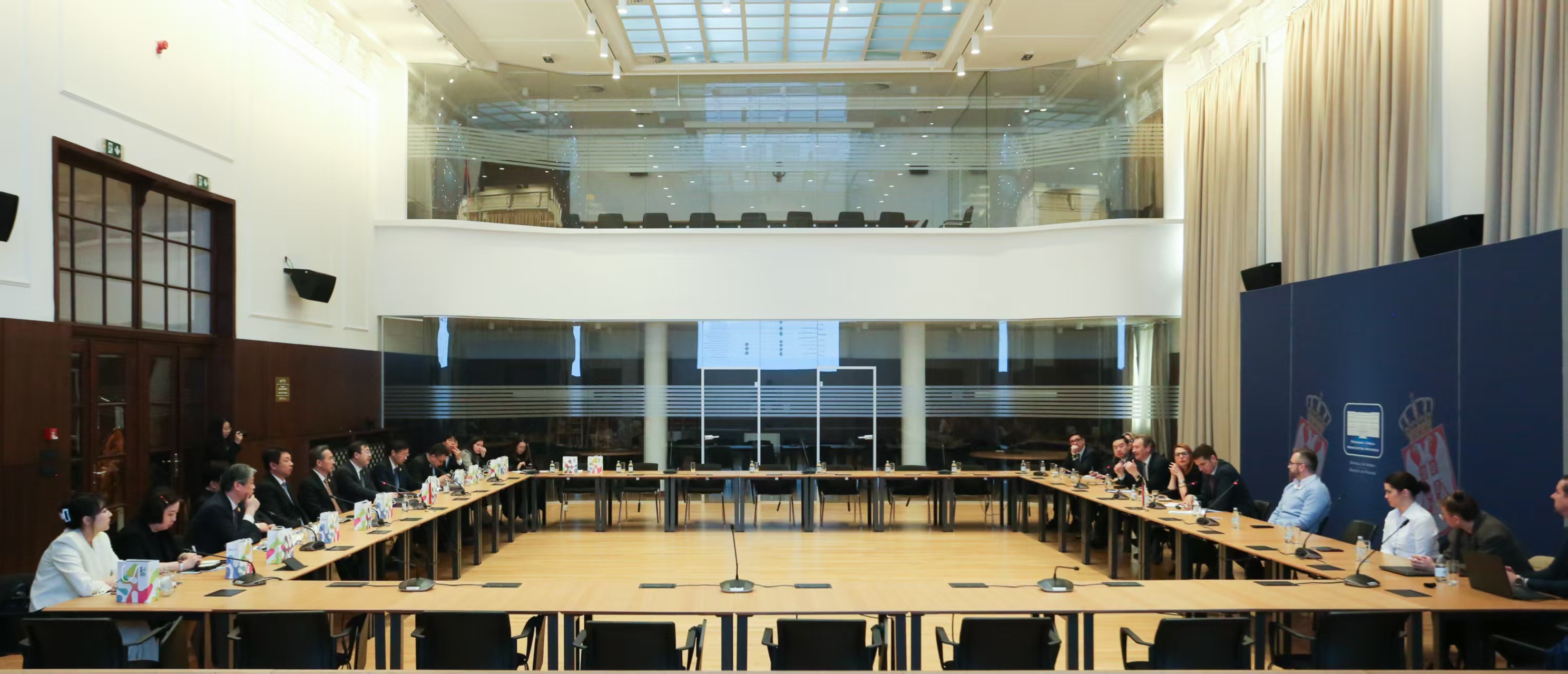中方宣介全国两会精神,强调愿与塞方一道,积极落实习近平主席对塞尔维亚国事访问成果,进一步扩大贸易投资合作;在巩固现有领域合作基础上,开拓信息技术、生物技术、人工智能等创新合作;积极支持塞方举办2027年贝尔格莱德专业类世博会,欢迎塞尔维亚企业参加第三届链博会,深化双方产业链供应链合作。