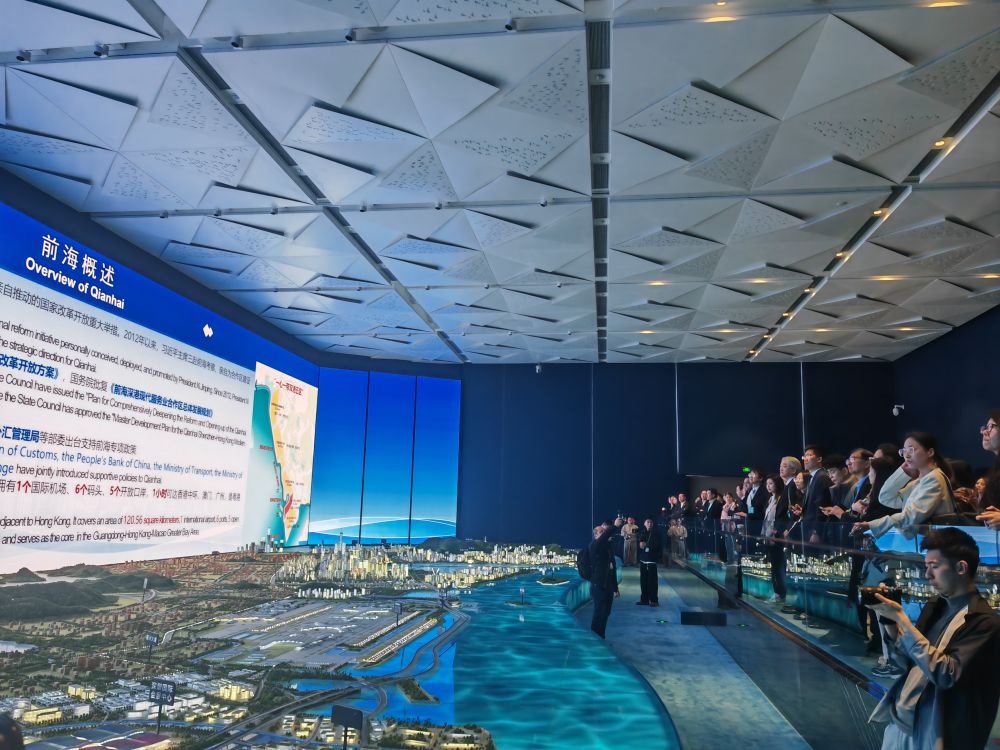 4月3日,外资企业“广东行”代表团成员在深圳前海展示厅参观。新华社记者潘洁 摄