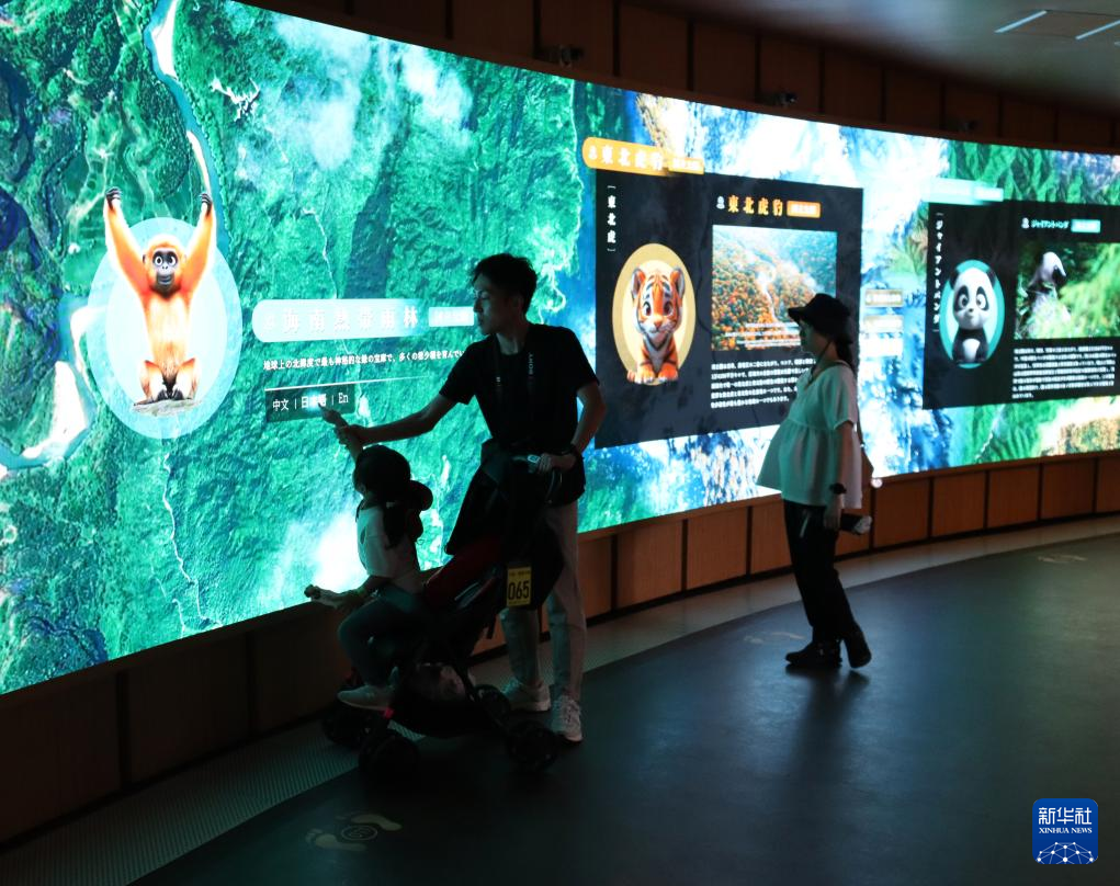 “歪头了!真可爱啊!”看到屏幕上憨态可掬的大熊猫宝宝,观众们不禁发出感叹;当圆乎乎的东北虎宝宝瞪大眼睛缓缓招手,观众也笑着向它挥手回应。在与虚拟动物的互动中,在悠悠青山、涓涓细流的画面里,游客们感受到中国多姿多彩的生态之美。