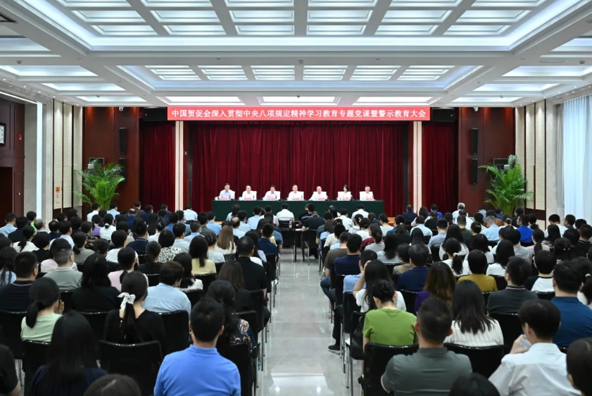 7月1日,中国贸促会召开深入贯彻中央八项规定精神学习教育专题党课暨警示教育大会,党组书记、会长任鸿斌以《锲而不舍落实中央八项规定精神 以作风建设新成效开创贸促事业高质量发展新局面》为题为党员干部讲授学习教育专题党课。驻部纪检监察组副组长李晶明通报了中国贸促会近年来违反中央八项规定精神典型案例和查处的有关案件。