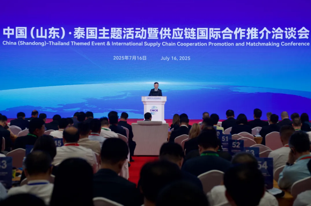 7月16日,在第三届链博会举办期间,中国(山东)·泰国主题活动暨供应链国际合作推介洽谈会在北京举办。中国贸促会副会长聂文慧、山东省副省长宋军继、泰国商业部常务副次长艾卡阐·斯达瓦拉澜等中外嘉宾出席并致辞。