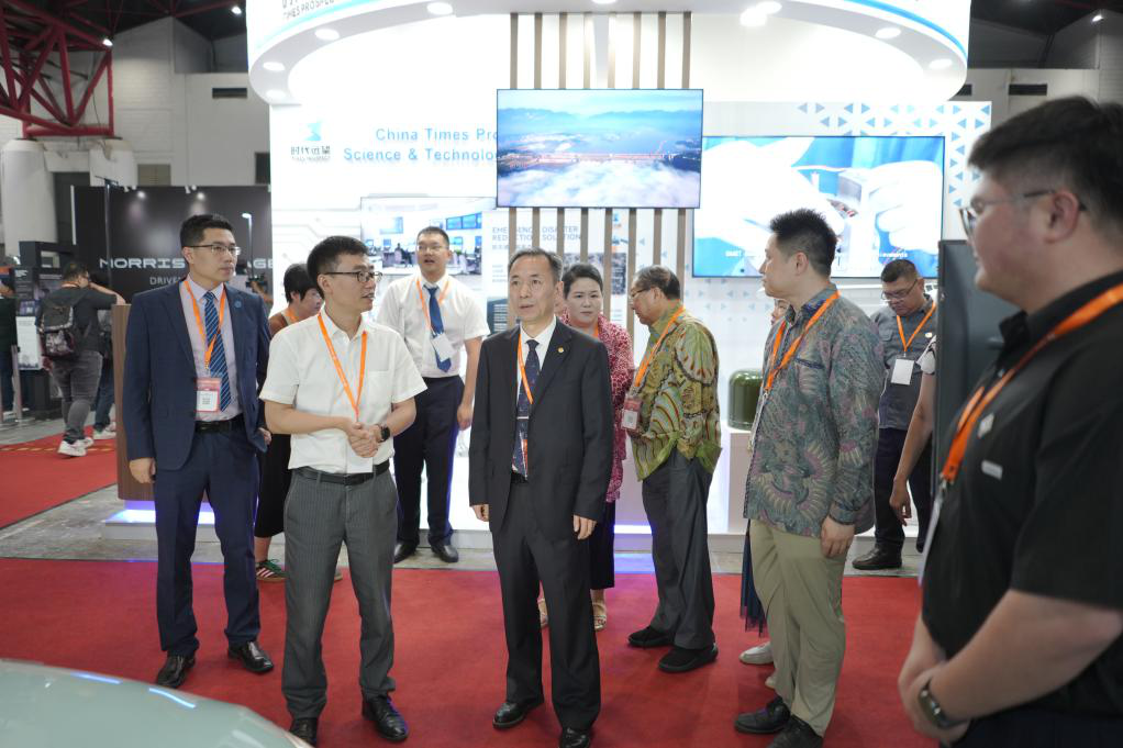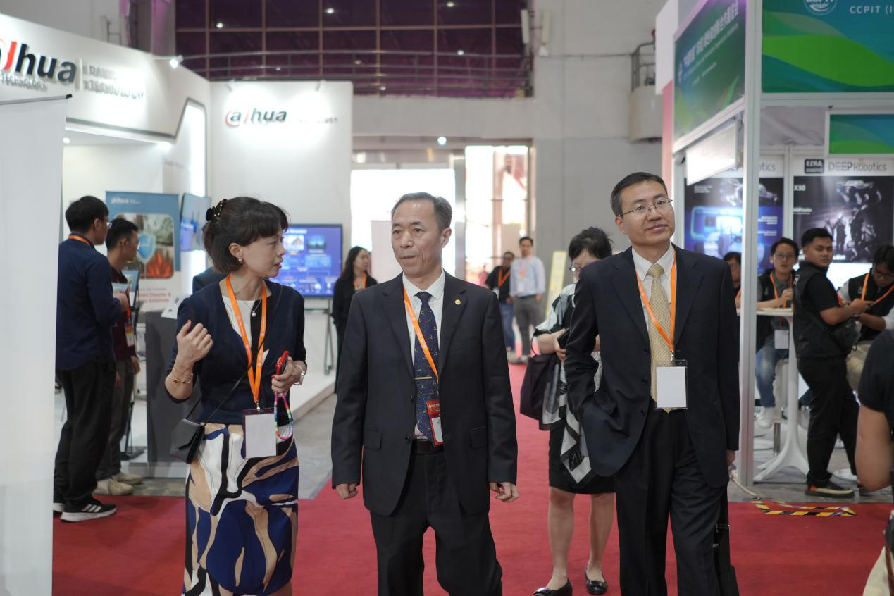 1500平方米展区涵盖了“智慧安防、低碳能源、数字基建”等板块,其中新能源展品占比超40%,上汽、东风汽车江铃、名爵等车企的新款新能源车集中亮相,彰显中国智造服务全球可持续发展的担当。展区现场亮点纷呈,华为"智能矿山解决方案"通过5G+AI技术实现地质灾害毫秒级预警,吸引印尼政府官员驻足洽谈;浙江大华"城市洪涝监测平台"融合卫星遥感与地面传感数据,可提前72小时预测雅加达洪涝风险;傲鲨智能AI智能机器人现场演示受到广泛关注。多家科技型企业带来创新技术和服务,包括云深处科技的消防侦察机器人在模拟火场中自主完成探测任务,德兰明海的光储一体设备实现离网地区可持续供电等,展示了中国新制生产力的创新成果。