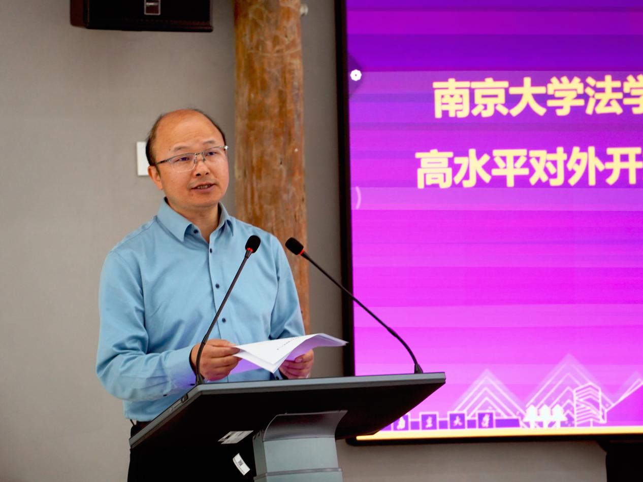 南京大学法学院党委书记蒋恩铭代表法学院发表致辞,他重点阐述了南京大学法学院在涉外法治研究领域的深厚积累,强调了企业“出海”背景下专业的法律智力支持与实务服务平台的重要性。对新成立的南京大学法学院企业出海研究中心(以下简称“企业出海研究中心”),他提出要将其打造为“学术+产业+服务”的协同平台、问题导向的研究平台、供需对接的服务平台和政企协同的沟通平台,助力企业高质量“走出去”。