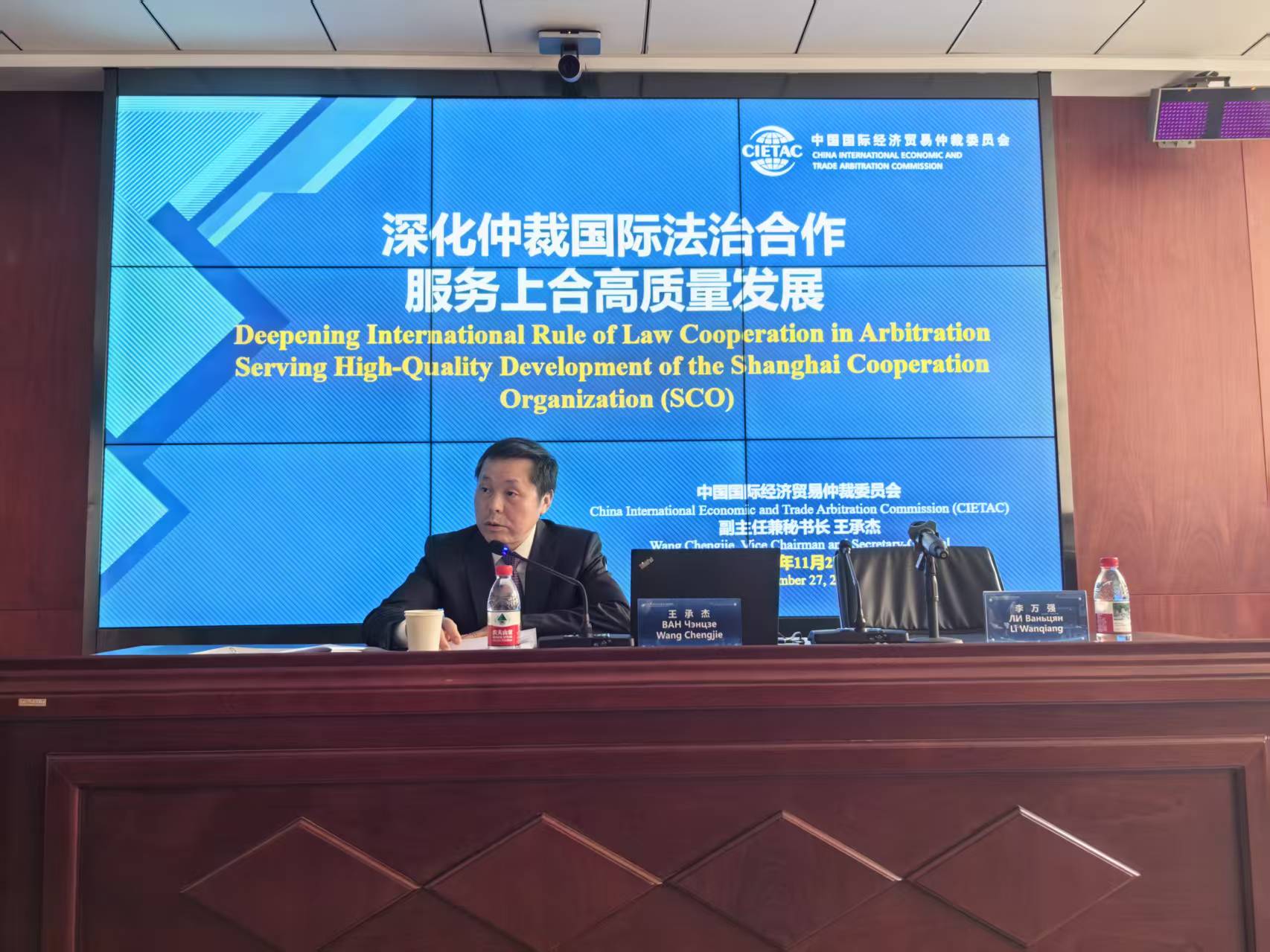 授课中,王承杰秘书长以“深化仲裁国际法治合作 服务上合高质量发展”为题,系统讲解了国际商事仲裁制度与实践和中国仲裁发展成就,从贸仲案件涉外性特色、规则创新引领、仲裁员队伍建设、便利化网络布局、多元争议解决服务、科技赋能数智仲裁、国际法治交流合作、法治人才培养等角度,全面介绍了贸仲近年来国际化发展的最新成果,深刻阐释了新时代背景下,仲裁作为跨境商事争议解决的有效手段和国际法治的重要组成部分,在统筹国内法治和涉外法治、参与全球治理方面的特殊作用,以及加强仲裁国际法治合作对于上合组织的重要意义。