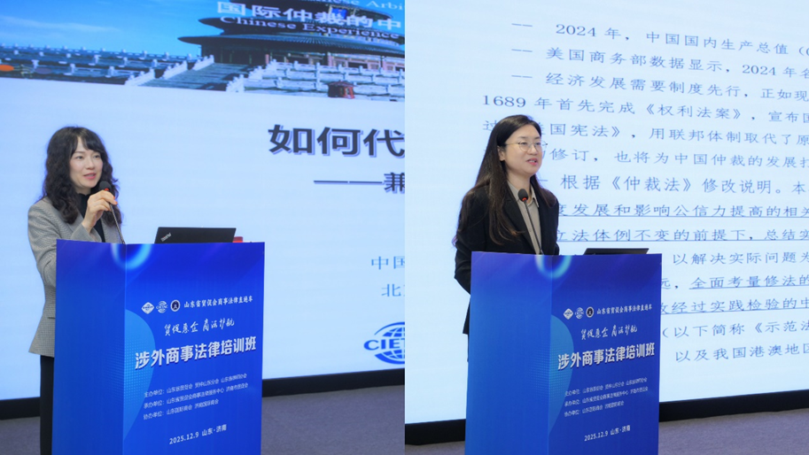 2025年12月8日至10日,山东省贸促会商事法律直通车——涉外商事法律培训班活动在济南成功举办。本次活动由中国国际经济贸易仲裁委员会山东分会(以下简称“贸仲山东分会”)与中国国际贸易促进委员会山东省委员会(以下简称“山东省贸促会”)、山东省律师协会共同主办,中国国际贸易促进委员会山东省委员会商事法律服务中心(以下简称“山东省贸促会商事法律服务中心”)、中国国际贸易促进委员会济南市分会共同承办,中国国际商会山东商会、中国国际商会济南商会共同协办。山东省贸促会副会长魏凤、山东省律师协会监事长张巧良出席活动并致辞。香港国际调解中心主席罗伟雄,中国贸促会调解中心副秘书长王芳,贸仲仲裁员、北京市长安律师事务所高级合伙人刘净女士,贸仲仲裁员戴红女士,中伦律师事务所合伙人于治国、殷星,六位专家分别作主题演讲。贸仲山东分会秘书长助理周玥熠出席本次活动。