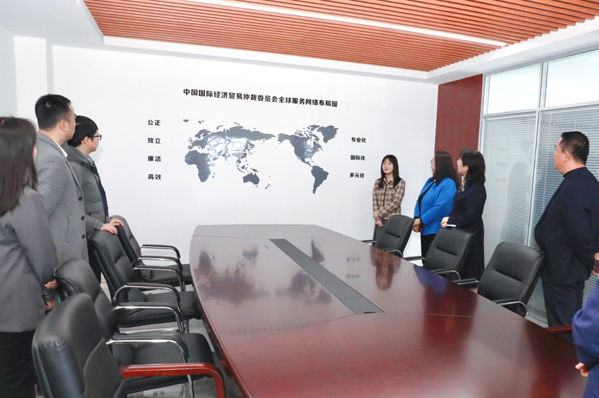 前,贸仲丝路中心工作人员带领到访嘉宾参观办公场地。