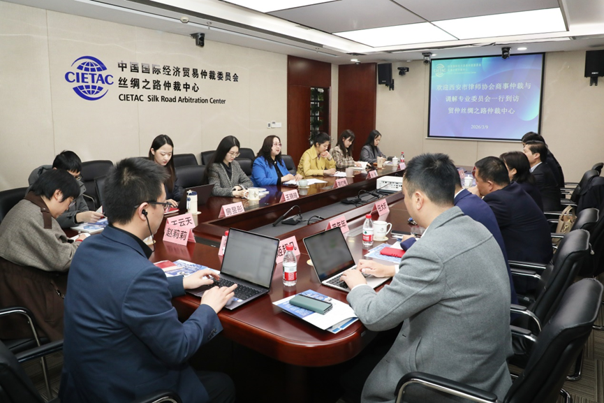 2026年3月9日,西安市律师协会商事仲裁与调解专业委员会(简称“西安市律协仲调委”)主任张玲一行到访中国国际经济贸易仲裁委员会丝绸之路仲裁中心(简称“贸仲丝路中心”)。贸仲丝路中心副秘书长蒋红梅接待并座谈。