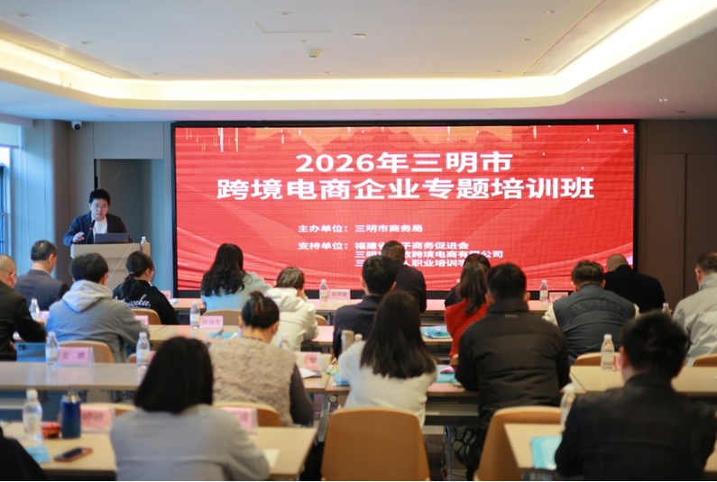 2026年3月13日下午,中国国际经济贸易仲裁委员会(简称“贸仲”)福建分会、海峡两岸仲裁中心(简称“海峡中心”)应邀参加由三明市商务局主办的跨境电商企业培训班并作专题授课。60余名企业代表参训。