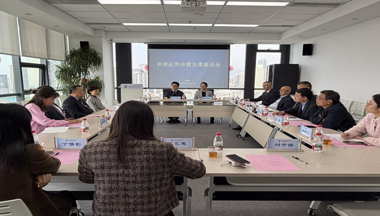 2026年3月27日下午,由海峡两岸仲裁中心(下称“海峡中心”)、中国国际经济贸易仲裁委员会(下称“贸仲”)福建分会、台湾中华仲裁协会、福建省贸促会、福建省律师协会共同组织的“两岸经贸仲裁法律座谈会”在福州成功举办。台湾中华仲裁协会理事长吴永乾及秘书长林桓、福建省贸促会副会长杨立云、福建省司法厅公共法律服务管理处负责人黄世华、福建省律师协会副会长许明、福州大学法学院教授黄辉、福建省高级人民法院民四庭法官魏孜孜、海峡中心副秘书长、贸仲福建分会秘书长陈朝晖及相关单位代表参会。