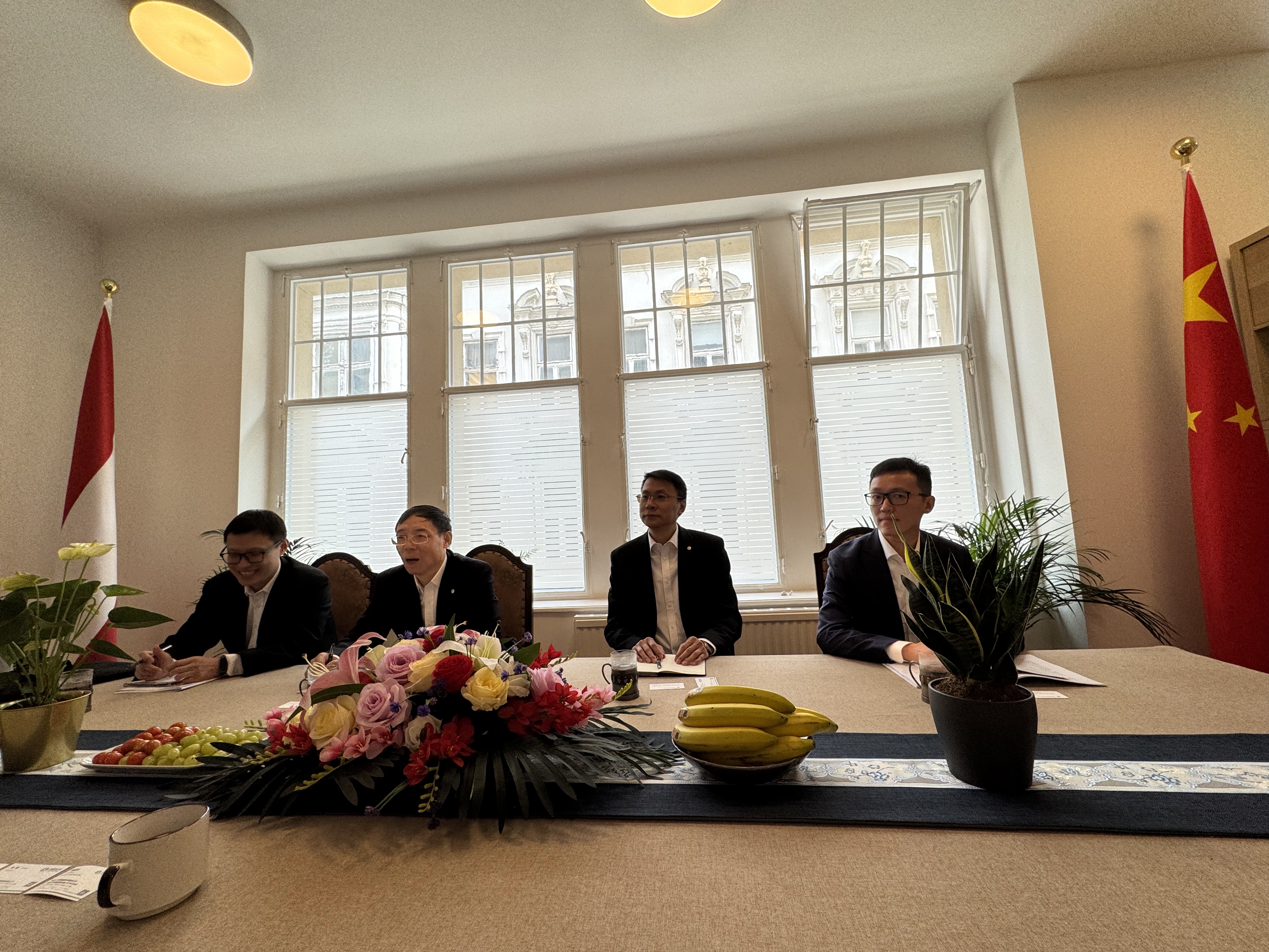 朱捷副总经理介绍了太平保险集团的发展历史、近期工作和海外业务情况;刘振华总代表介绍了中国贸促会在促进中奥两国关系过程中发挥的独特作用、奥地利经济社会发展和在奥中资企业情况,并对第二届链博会进行了推介。双方还就中欧经贸关系前景、加强后续合作进行了交流和探讨。