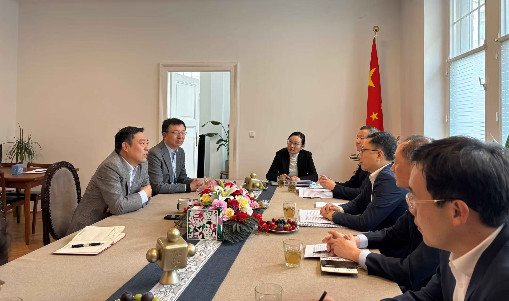 10月20日下午,中共上海市静安区区委常委、组织部长莫亮金一行6人到访我处,新华社维也纳分社首席记者于涛陪同会见。