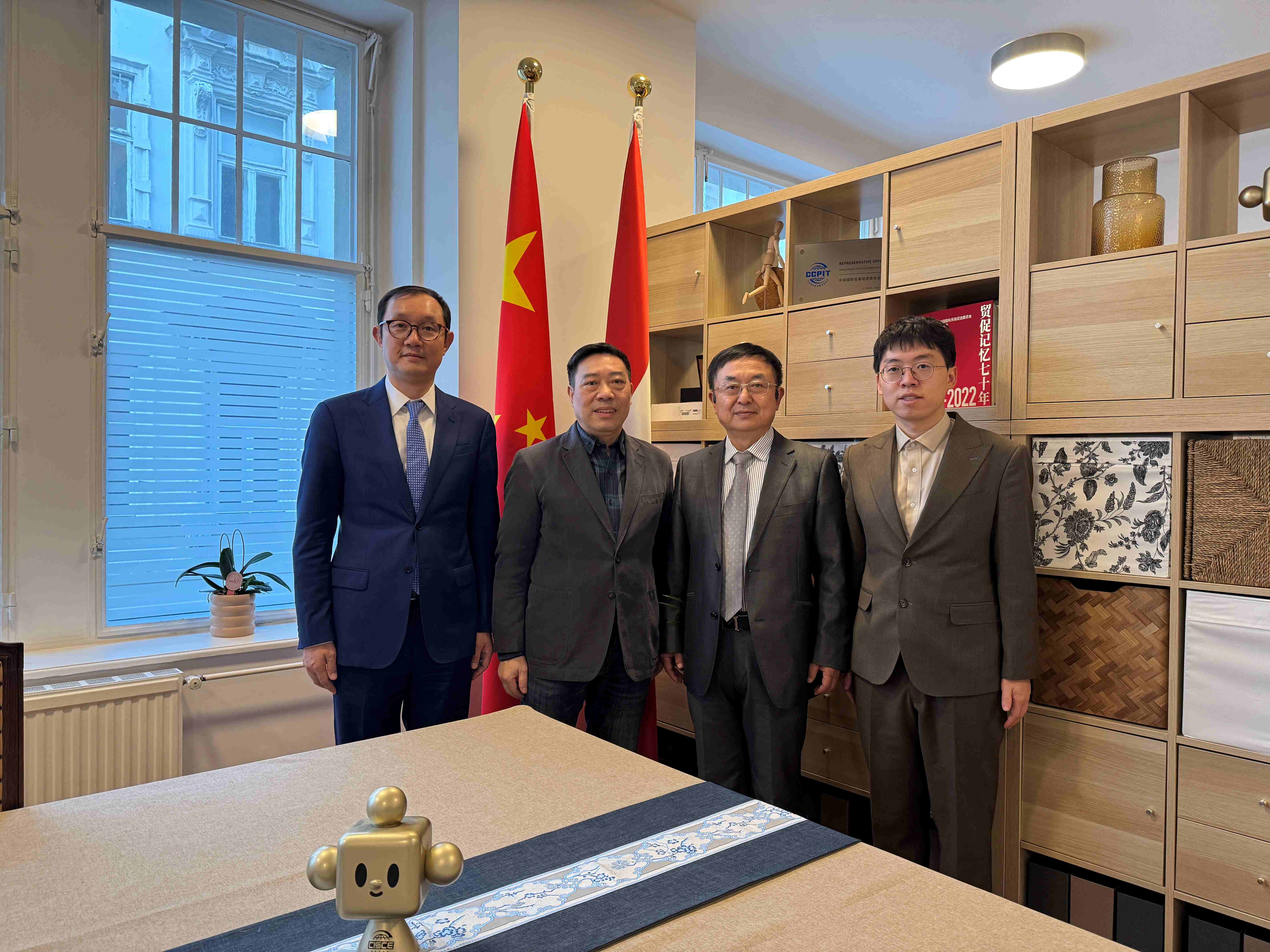 曹红光首席科学家介绍了纳米维景公司核心技术、专利、认证等方面情况;袁黎董事介绍了全球相控阵CT系统情况,公司在技术创新、供应链、市场前景等方面的优势,以及公司参加今年6月第四届中国国际供应链促进博览会(简称“链博会”)的考虑;刘振华总代表简要描述了我处历史和主要工作内容,详细介绍了奥地利和欧洲营商环境、经济特点,中奥关系和奥地利中资企业情况,并欢迎纳米维景公司参加第四届链博会,期待公司产品在奥地利和欧洲市场获得预期良好效果。