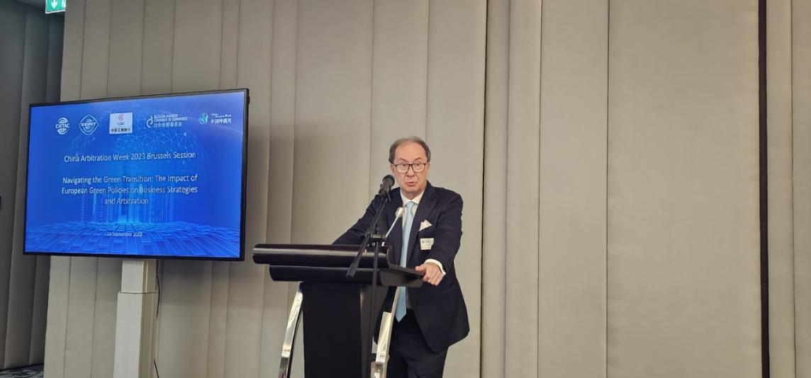 本次活动以“引领绿色转型:欧洲绿色政策对企业战略及仲裁的影响”为主题,邀请多位法律专家围绕欧洲绿色政策与仲裁的相关问题进行讨论,中国贸促会驻欧盟(比利时)代表处副总代表赵峰主持活动。