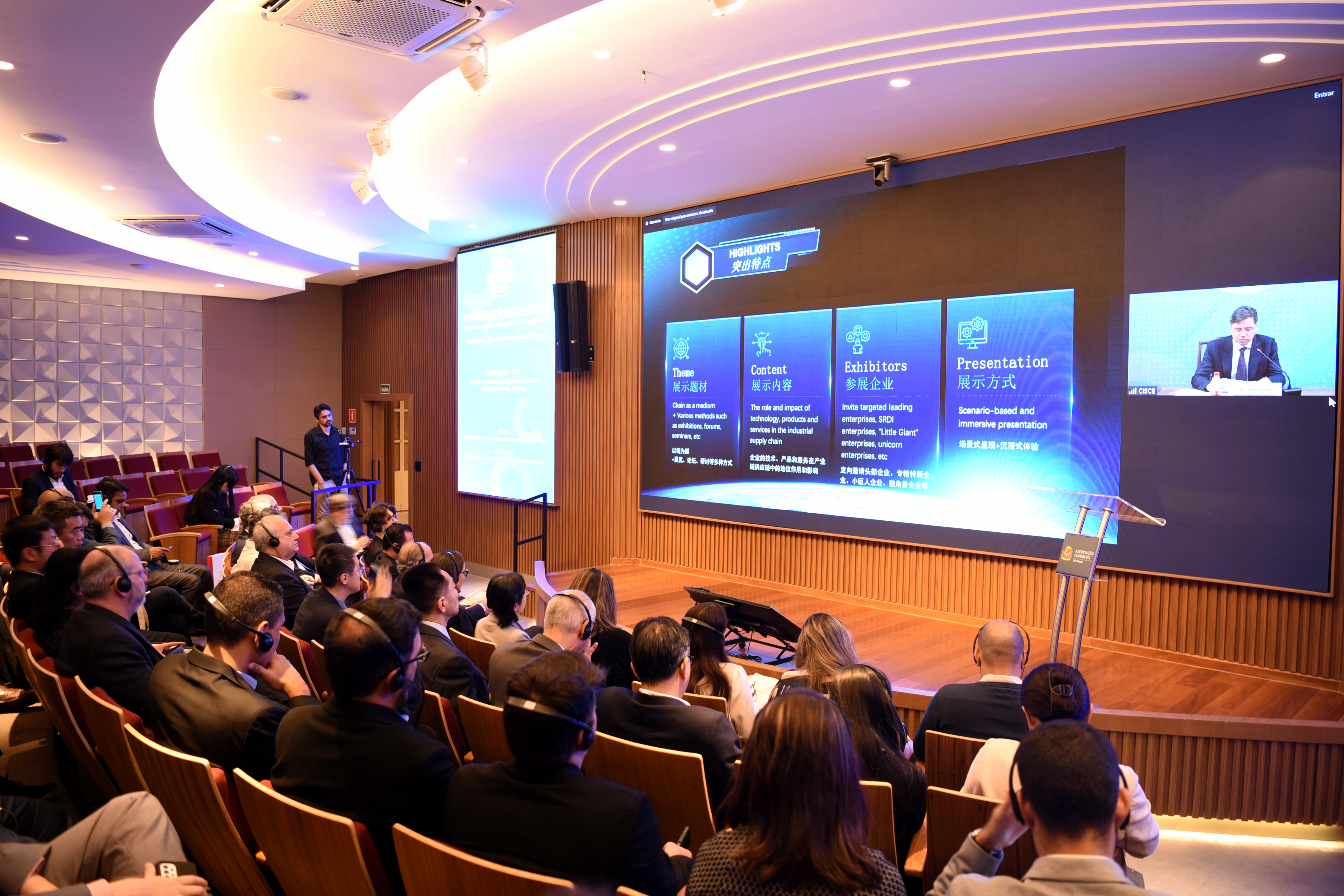 推介会上,嘉宾们一同观看了首届链博会宣传片。承办单位中国国际展览中心集团有限公司总裁冯耀祥详细介绍了首届链博会的有关情况。