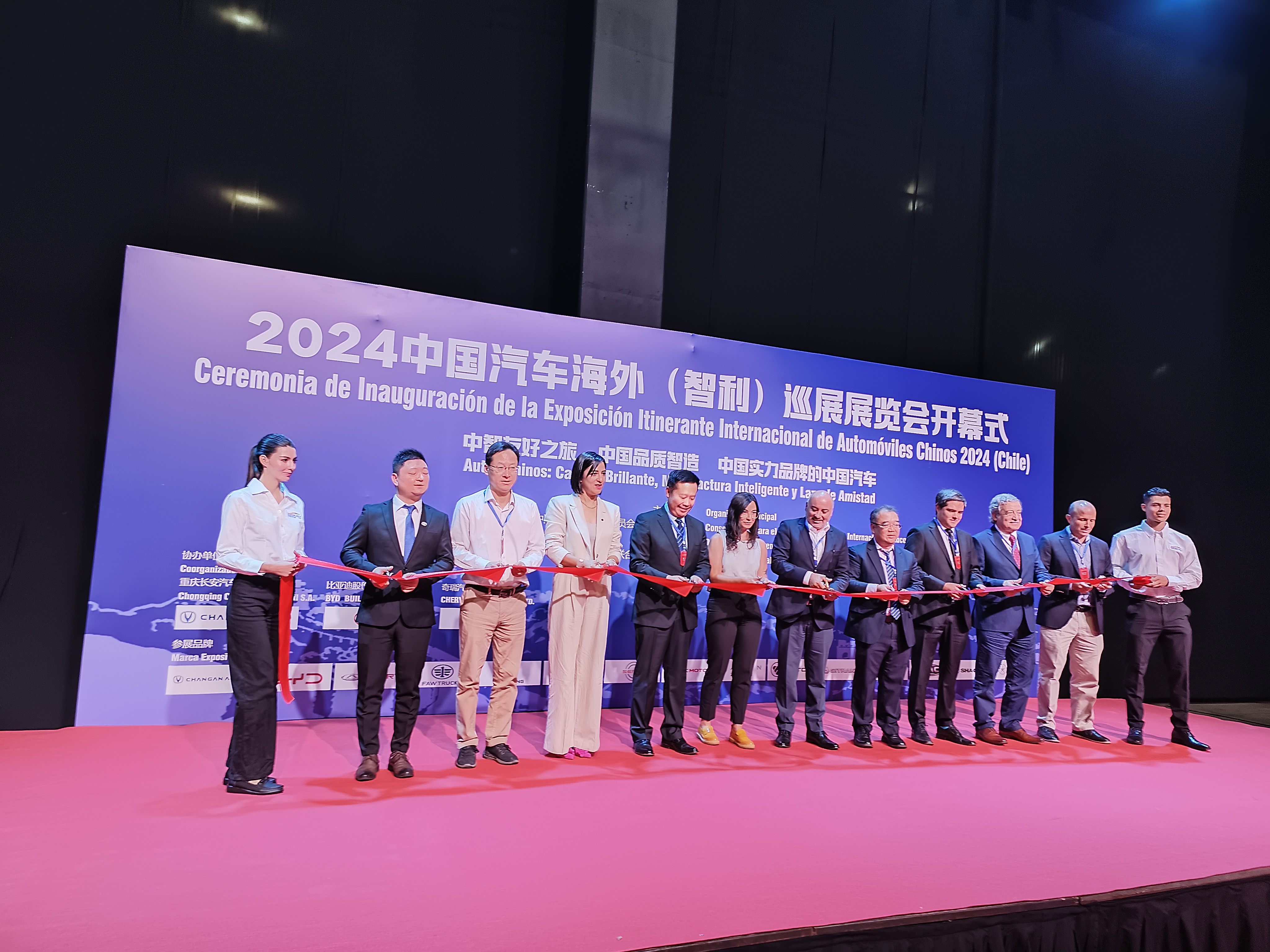 2024年3月1日,由中国贸促会汽车行业分会主办的中国汽车海外(智利)巡展展览会在首都圣地亚哥雷斯科国际会展中心成功举办。智利经济部副部长哈维拉·彼得森、智利交通部副部长豪尔赫·达萨、智利能源部副部长路易斯·费利佩、中国—智利贸易、工业和旅游商会会长胡安·埃斯特班、中国驻智利大使馆经济商务处参赞马克强等多位嘉宾出席,中国贸促会驻智利代表处首席代表周凯出席开幕式并致辞。长安汽车、上汽、比亚迪、奇瑞、中国重汽等约15家中国企业参展,展览面积超5000平方米,开幕式的专业观众和媒体人员超200人,本次展会对中国汽车走出去、中国汽车品牌推广发挥了重要作用。