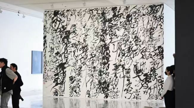 图:来宾参观“青山行不尽:山海渡远”唐诗之路艺术展