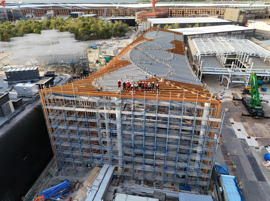 2024年7月31日,2025年日本大阪世博会中国馆主体结构顺利封顶,在海外大型自建馆中率先完成,中国馆建设取得重要阶段性成果。