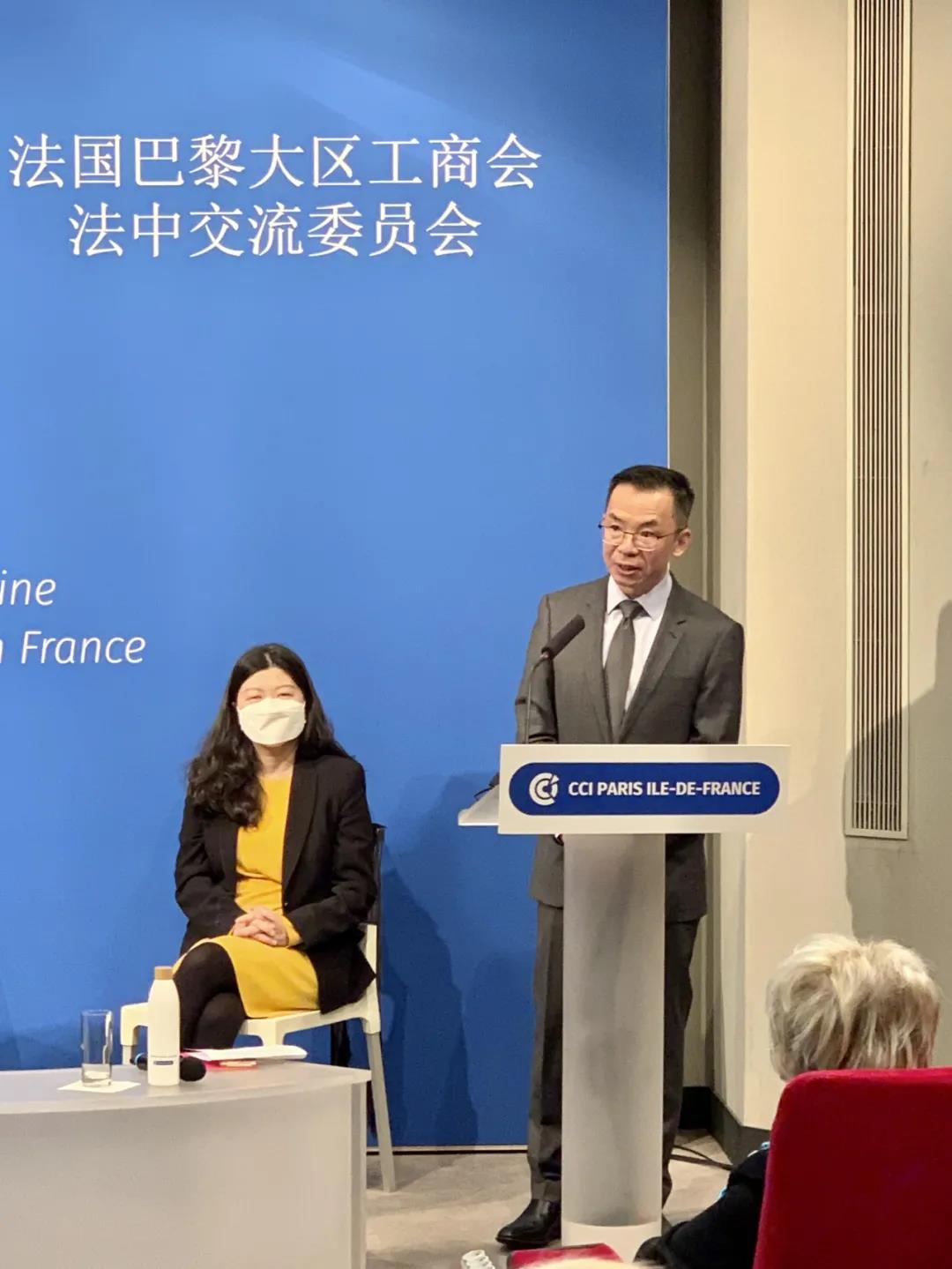 2022年2月7日,“庆祝中法建交58周年——2022年的重大挑战”研讨会在法国巴黎大区工商会举行。驻法国大使卢沙野、法国前总理拉法兰、巴黎大区工商会会长里斯蒂诺、法国前驻华大使蓝峰、法国中国工商会主席何立勤等现场出席。中法企业界代表200余人现场或远程在线参会,巴黎大区工商会中国事务代表埃戈多主持。