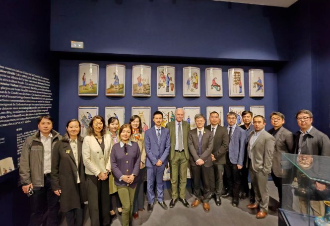代表团首先到访新中法大学。该组织副主席Alain Labat先生介绍了新中法大学的历史、在促进中法教育交流方面的贡献以及未来在文化、商业等领域的合作潜力,带领代表团参观纪念馆并进行深入交流。
