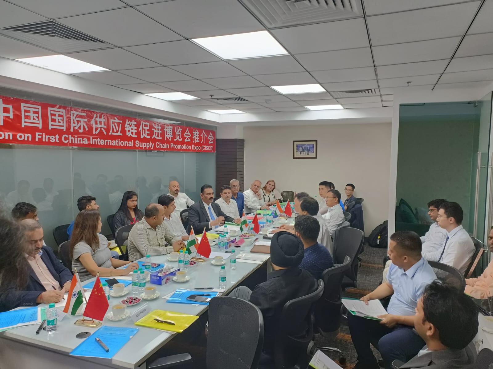 7月20日,首届中国国际供应链促进博览会印度推介会在中国贸促会驻印度代表处办公室举行,中国驻印度使馆经商处、印度工商界和中资企业代表等约50人出席本次活动。