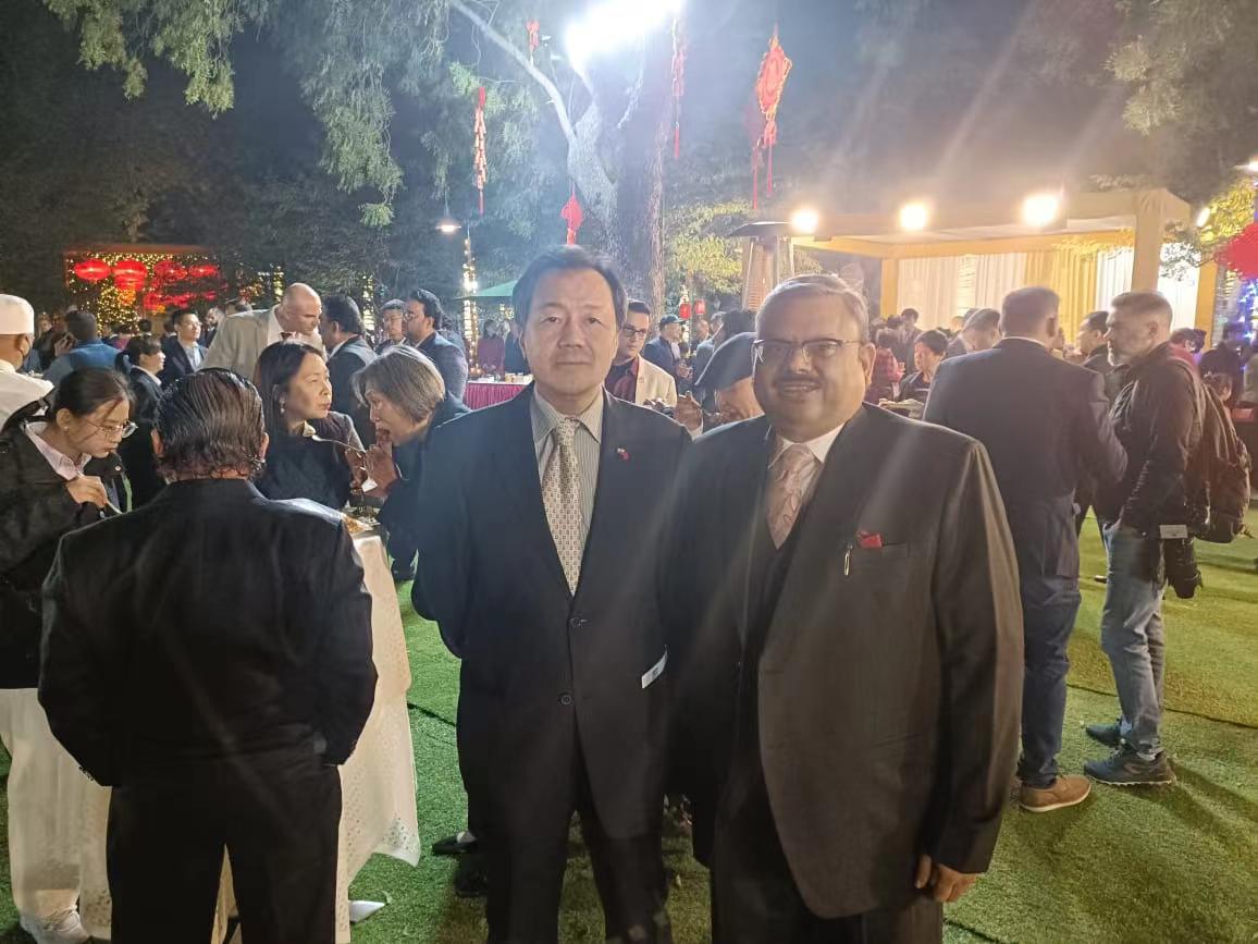 2024年2月6日傍晚,新德里华灯初上,驻印度使馆在官邸草坪举办“金龙献瑞—新春招待会”。马珈临时代办出席并致辞,印政府、政党、驻印使节、媒体、华侨华人、中资机构和留学生近600人应邀参加,驻印度代表处总代表刘晓冬出席了招待会。