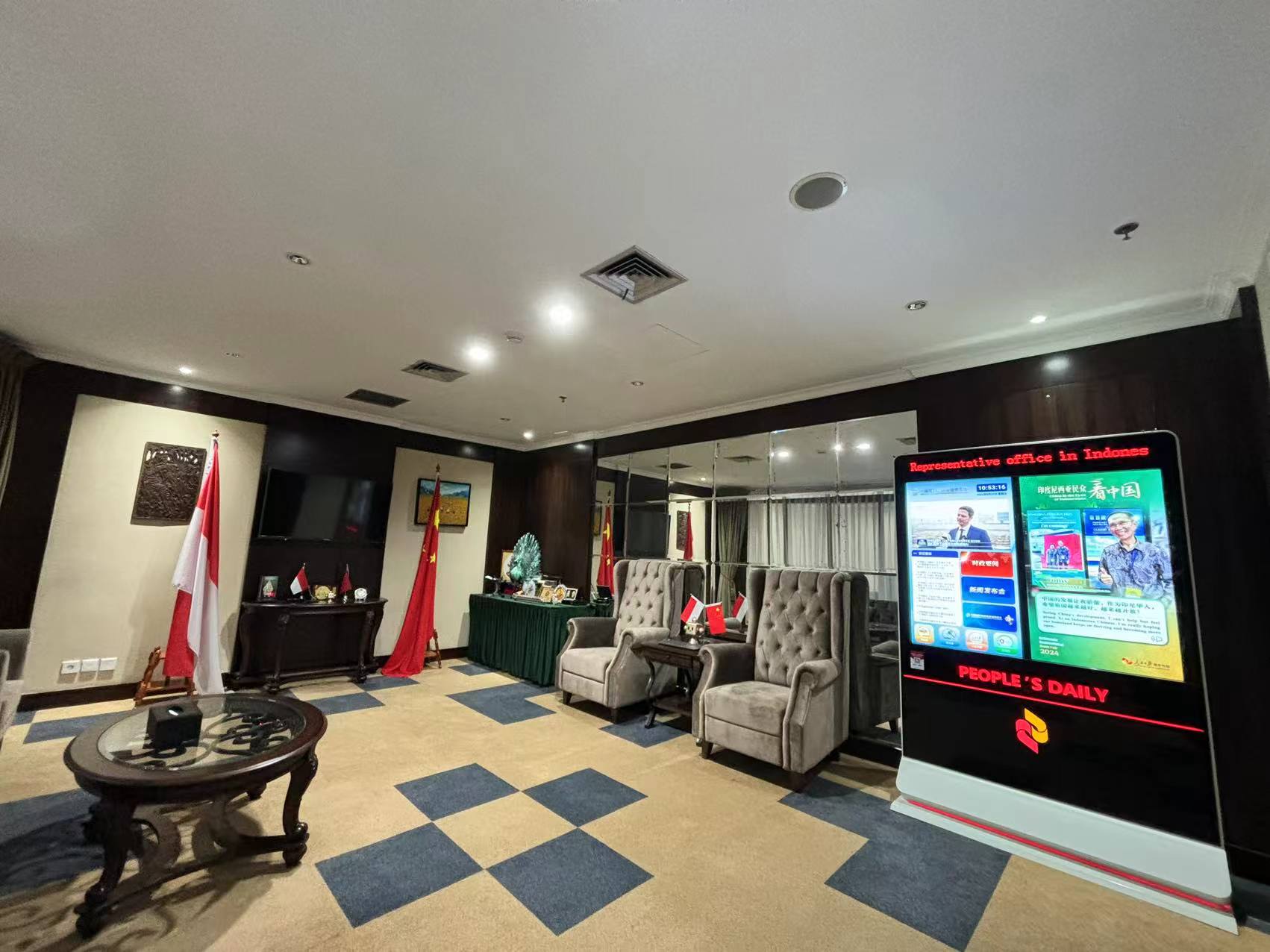 人民日报电子阅报栏日益成为数字技术赋能中外经贸、人文交流的载体,落地中国贸促会驻印尼代表处,为中国和印尼的商贸界、企业界在经济贸易投资领域的合作打造成果展示平台,发挥了独特的屏媒价值。