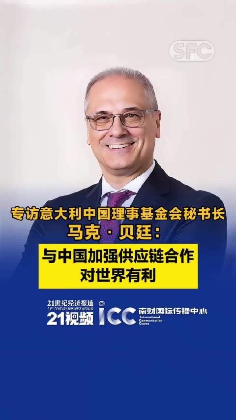 当天,意大利中国理事会基金会秘书长马克·贝廷(Marco Bettin)在接受21世纪经济报道记者专访时表达了对链博会的高度肯定,并期望通过链博会的平台进一步促进意中企业的商业合作。
